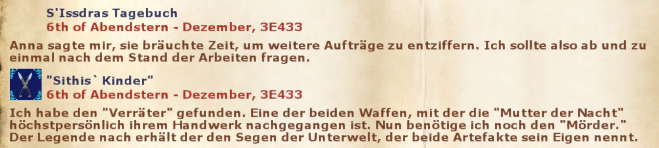 1) "Sithis Kinder" hab ich nur "Verräter" gefunden, wo finde dich "Mörder" ?