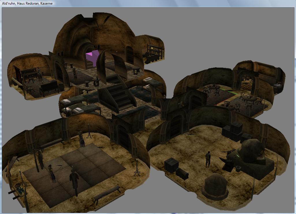 Momentan müssen noch für 3 Häuser die passenden internen Zellen angelegt und ausgestattet werden. Dazu kommen noch einige NPC, damit aus Ald'ruhn ne kleine geschäftige Stadt wird. Ich will jedoch nicht ausschließen, noch weitere Gebäude aufzustellen. Allerdings wird hier langsam der Bauraum knapp 😉