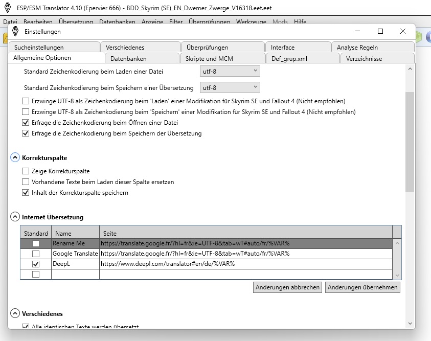 Ich benutze die aktuelle Version 4.10. Über den Shortcut Shift + F12 kann man die Texte einer Mod direkt vom Google Translator übersetzen lassen. Gibt es eine Möglichkeit, diese Option über den DeepL Übersetzer laufen zu lassen? Bzw. kennt jemand noch eine andere Möglichkeit, wie man recht einfach besonders viele Texte in kurzer Zeit über DeepL laufen lassen kann?