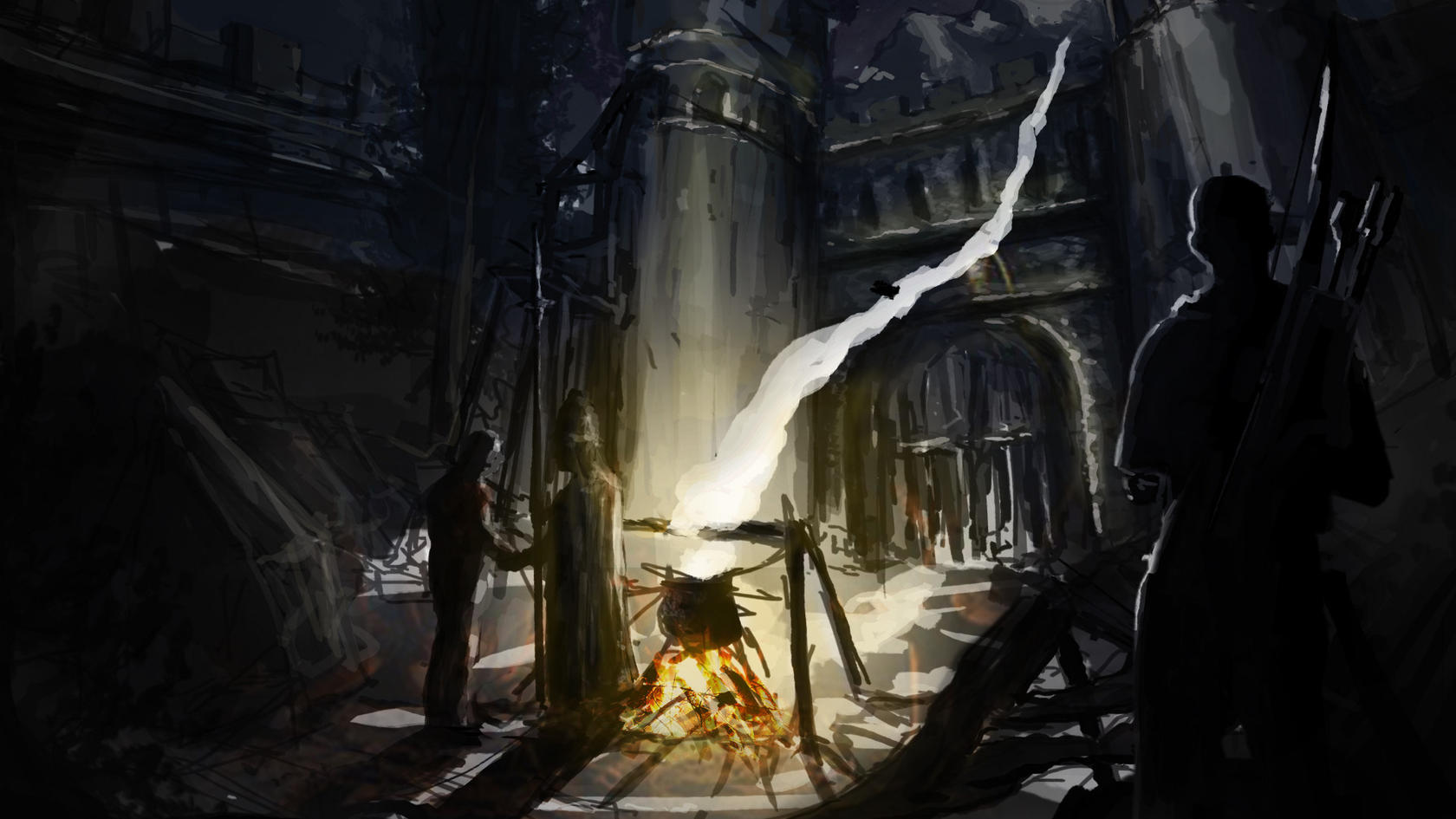 "Setzt Euch. Hier, ans Feuer."