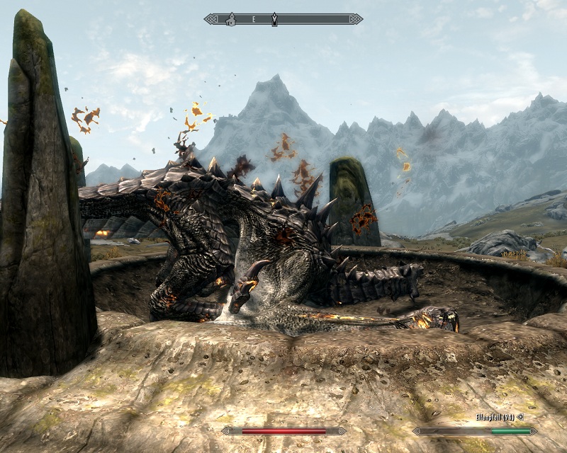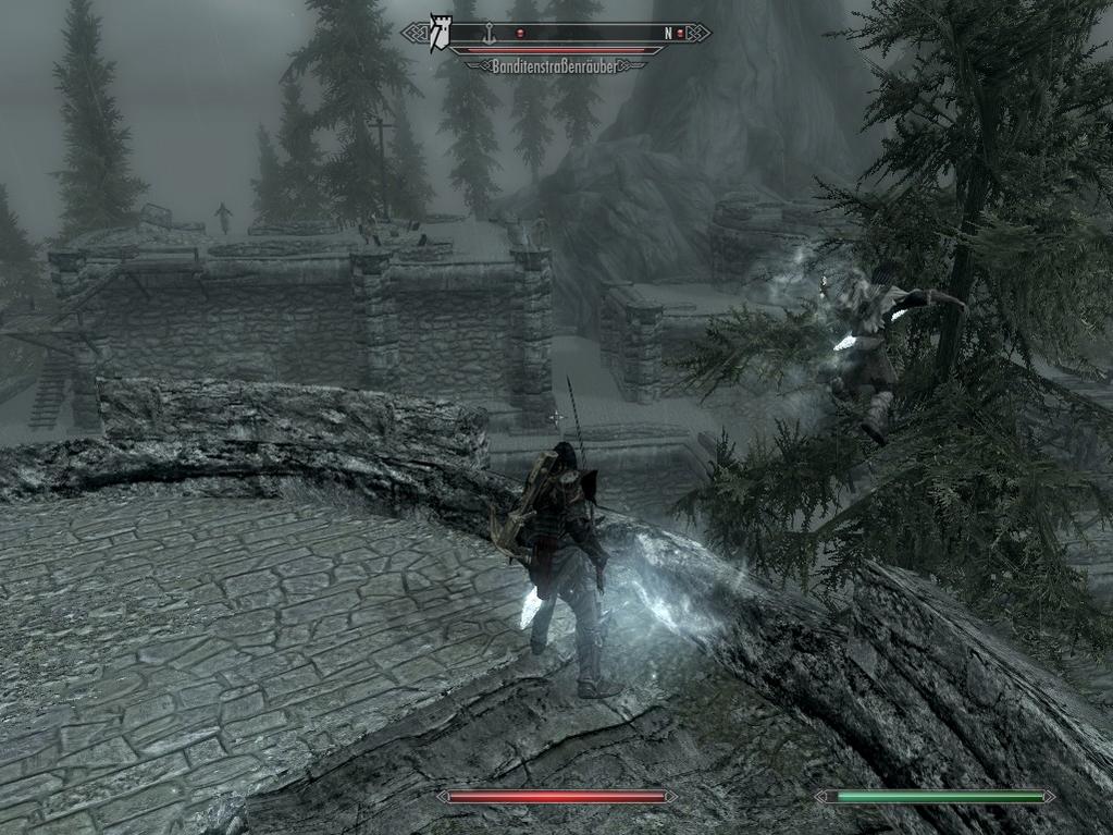 Da ich Sie nie angreife und Sie nur töte, wenn ich durch den Jarl den blöden Auftrag bekomme ist die Warscheinlichkeit natürlich noch geringer so was zu erleben. Aber vorgestern war es dann so weit. Ich ritt umher und sah gerade einen Kampf zwischen einem Säbelzahntiger und einem Riesen. Dieser holte aus, schlug auf den Boden und der Tiger ging ab wie ein Torpedo, flog so weit in den Himmel bis ich den nicht mehr sah und auf einmal kam er runter und landete in der Nähe von mir. Ich konnte danach nicht mehr zocken vor lauter lachen. Übrigens mag ich die Riesen total. Leider hat Bethesda keine gute Story mit denen eingebaut, also eine Quest etc. Das hätte sehr viel Potenzial.