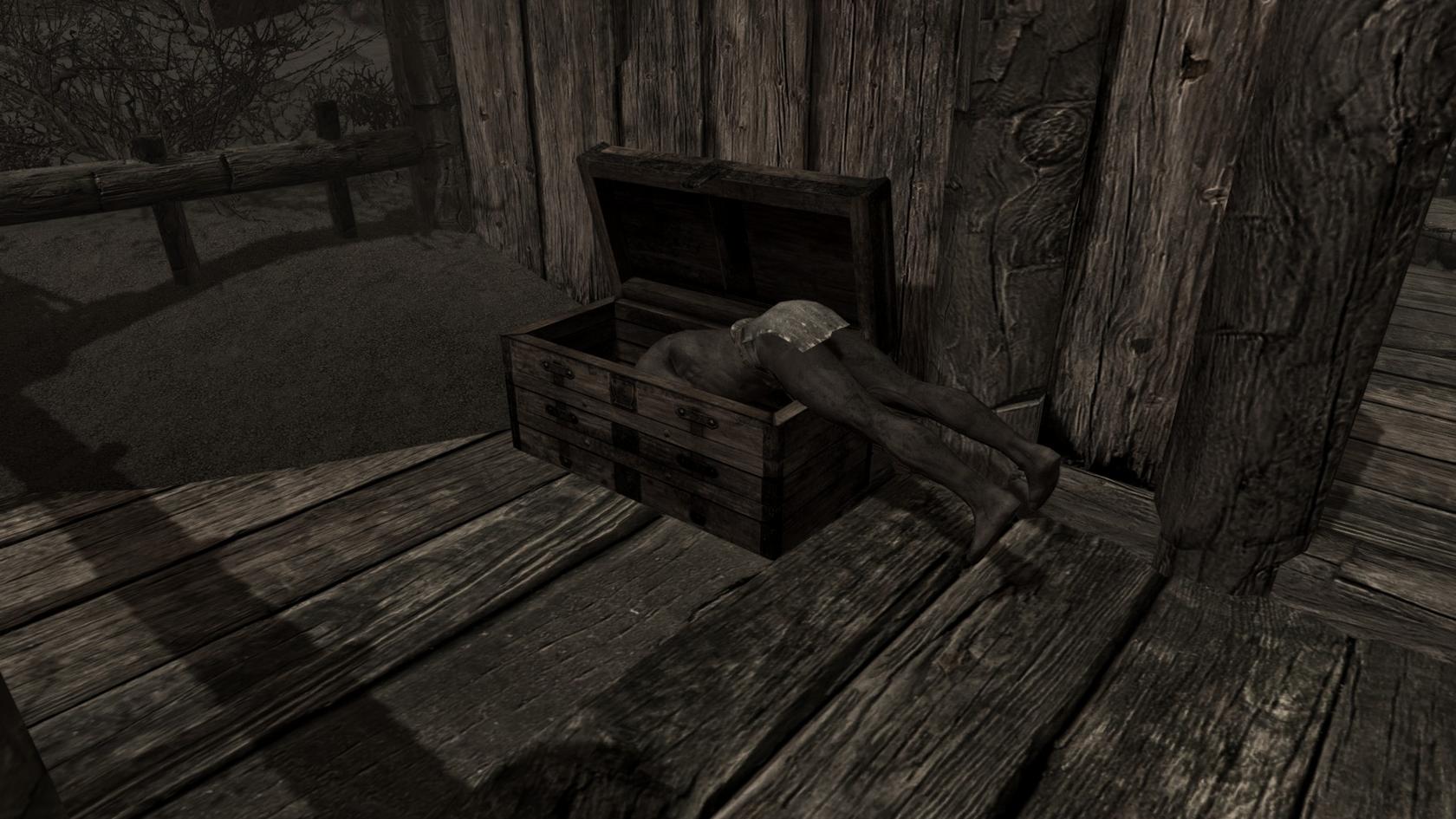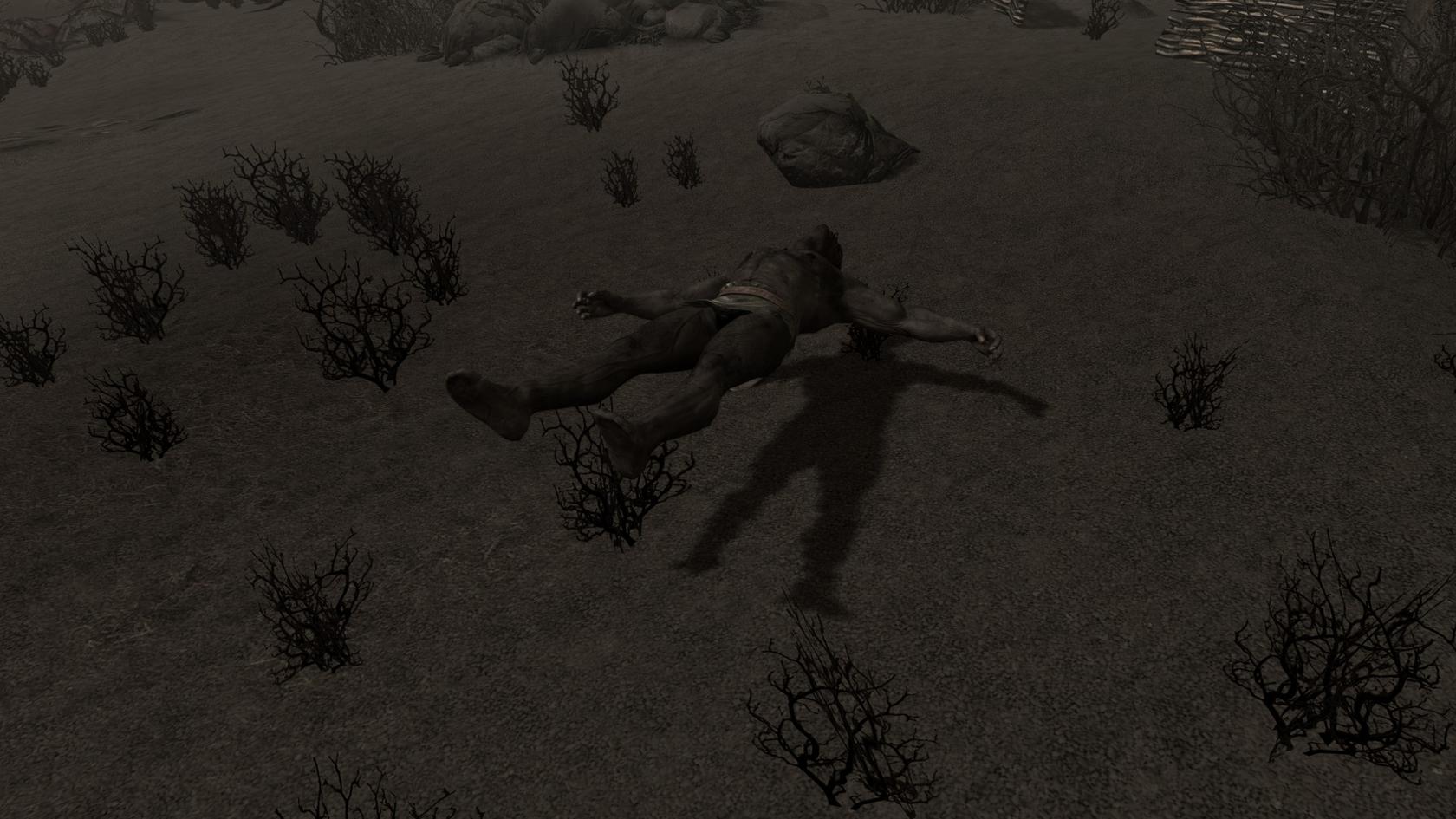 Serana hatte dazu ihren Eiszauber benutzt, sodass nun ein Knochen des Skeletts den Hang herunterkullerte, immer weiter und weiter - und in diesem Knochen steckte noch ein Eispfeil! Wie ein sich drehender Stern leuchtete der Knochen mir den Weg hinunter ans Ufer. Ich bin dem hinterhergelaufen, und es hat ein paar Sekunden benötigt, bis ich verstanden habe, was da leuchtet. Dann wollte ich gucken, wo der Knochen hinkullert, aber der rollte sich weiter und weiter... und wenn er nicht im Wasser versunken ist, dann kullert er vielleicht immer noch.