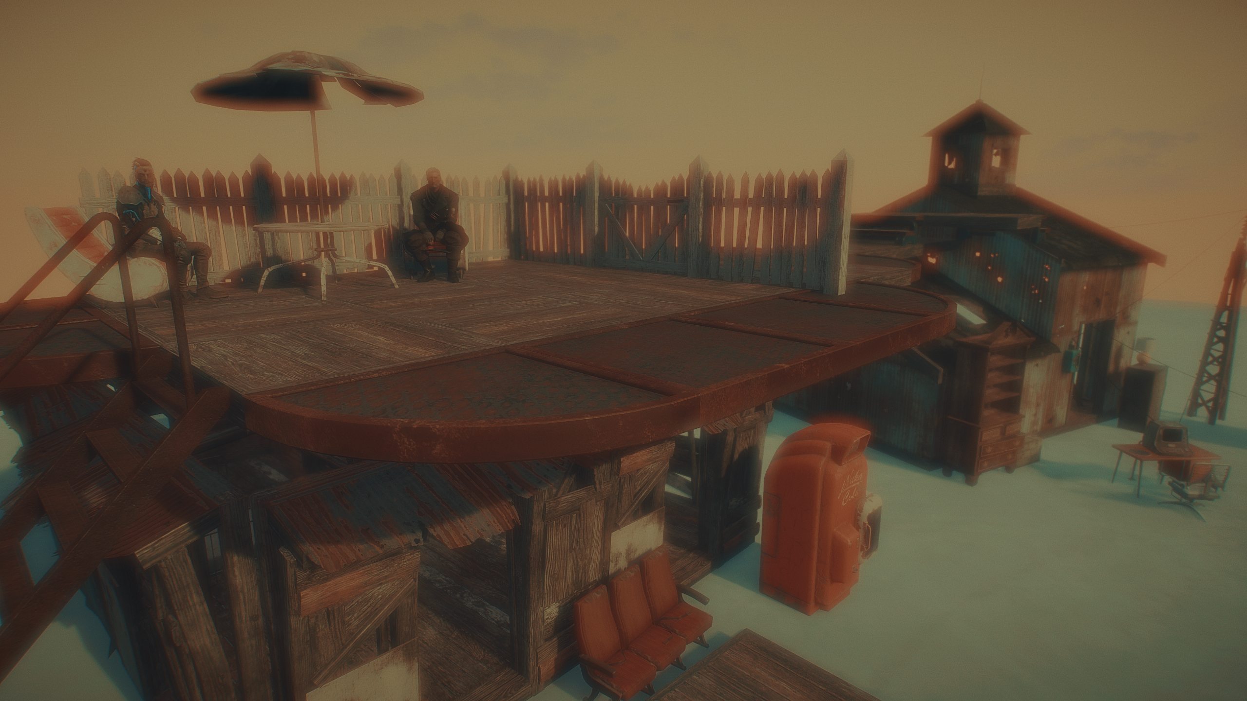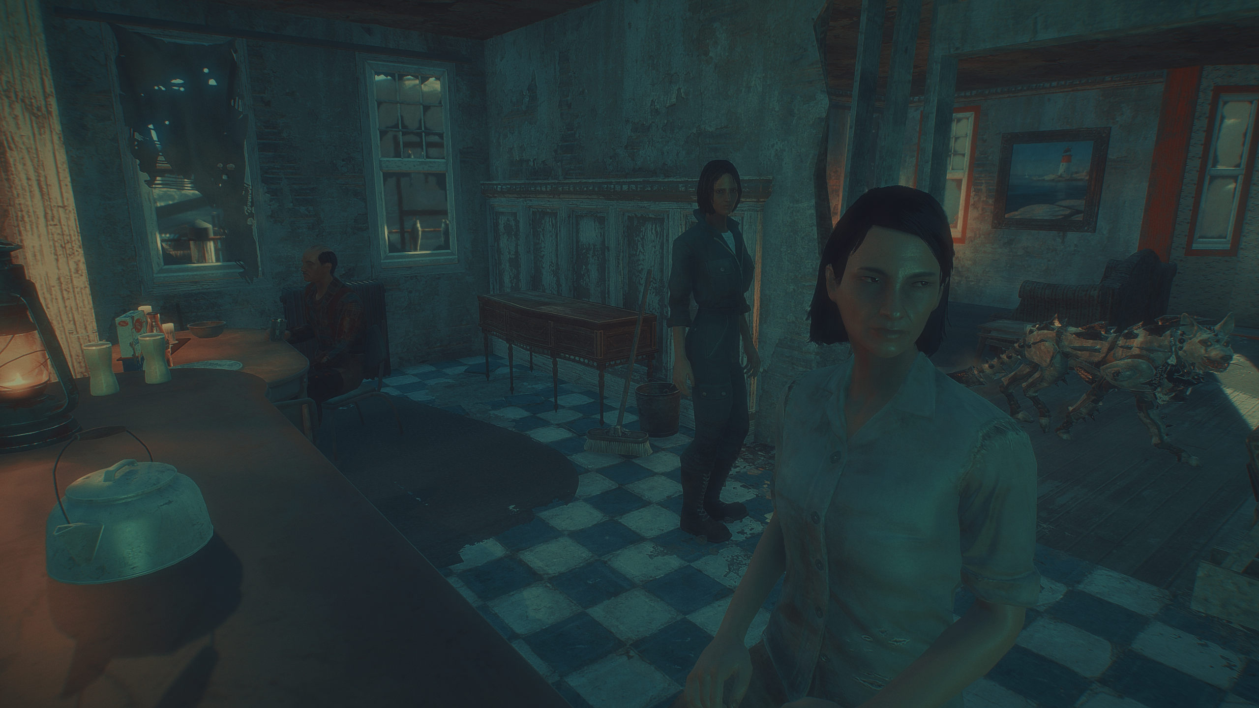 Alles was aufgebaut wurde, selbst größere Orte sind eine Ansammlung von zusammen geschusterten Teilen(Megaton, Girdershade, RivetCity, Diamond City) gehalten von Draht, Klebeband und viel gutem Willen. Selbst wenn wir behaupten das man langsam wieder zu einem normaleren Leben zurückfindet gilt das nur für einen geringeren Teil der Gesamtbevölkerung und der macht es nicht alleine sondern lässt machen.