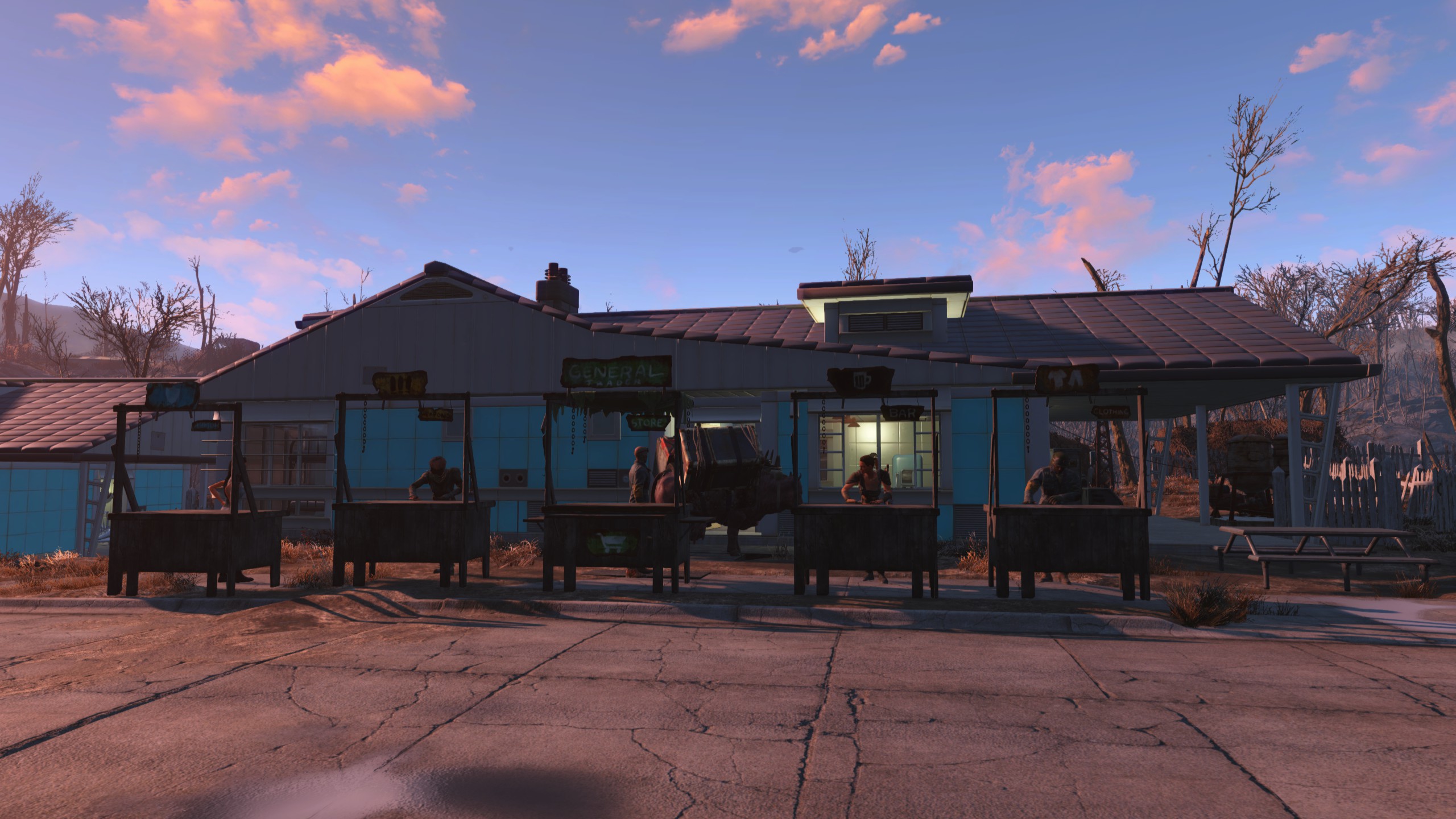 Es hat sogar Idle-Marker auf dem Marktplatz, etwas, das in Vanilla höchstens mal ein Begleiter nutzt und die meisten Spieler wahrscheinlich nie gesehen haben. Mal abgesehen davon, dass Far Harbor eher Richtung Endgame geht, wo man Siedlungen nicht mehr benötigt, um an Ressourcen zu kommen. Dann würde ich eher erwarten, dass ich das epische Eden Meadows Cinema kriege, das viel besser als Starlight Diner ist, statt solche, die übler als alle im Basis-Game sind. Okay, Eden Meadows Cinema habe ich selbst zur Siedlung gemacht.