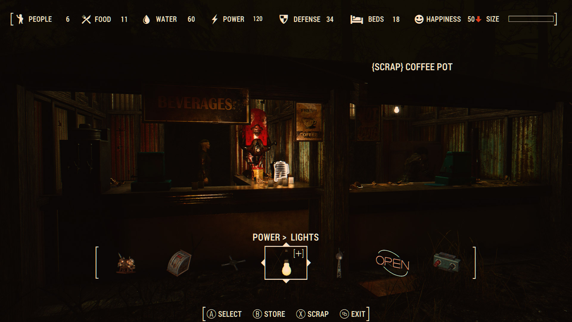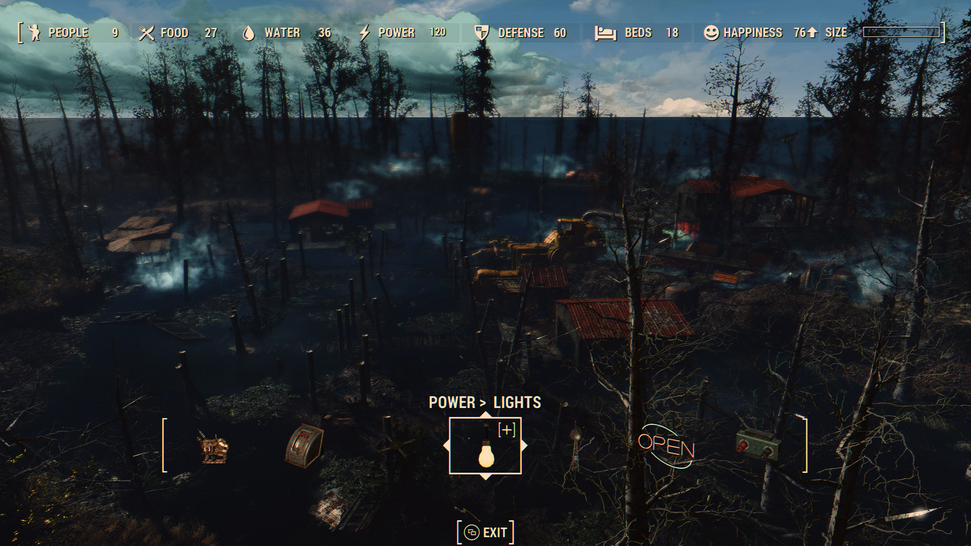 Aber ich habe ernsthaft keine Ahnung, was ich auf einer Konsole ohne Mods (darunter auch Scrap Everything und Place Everywhere) mit diesen Schrottsiedlungen anfangen sollte. Nichts scrapbar, nichts reparierbar, nichts richtig setzbar, und dazu ein Mini-Sortiment von Bauteilen, z.B. keine einzige Holzwand mit Fenstern drin.