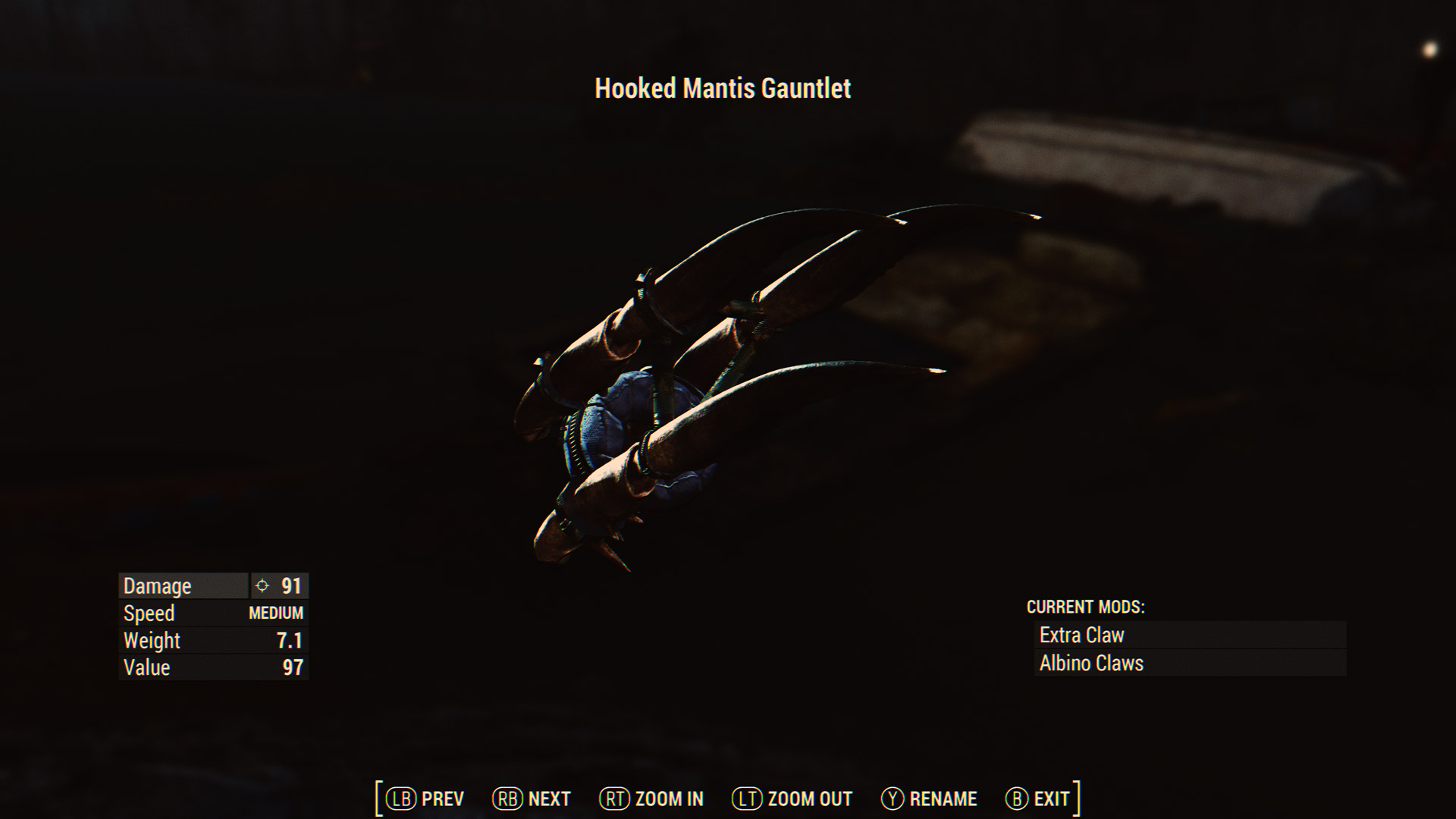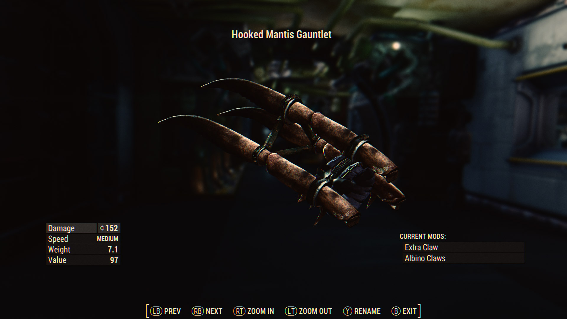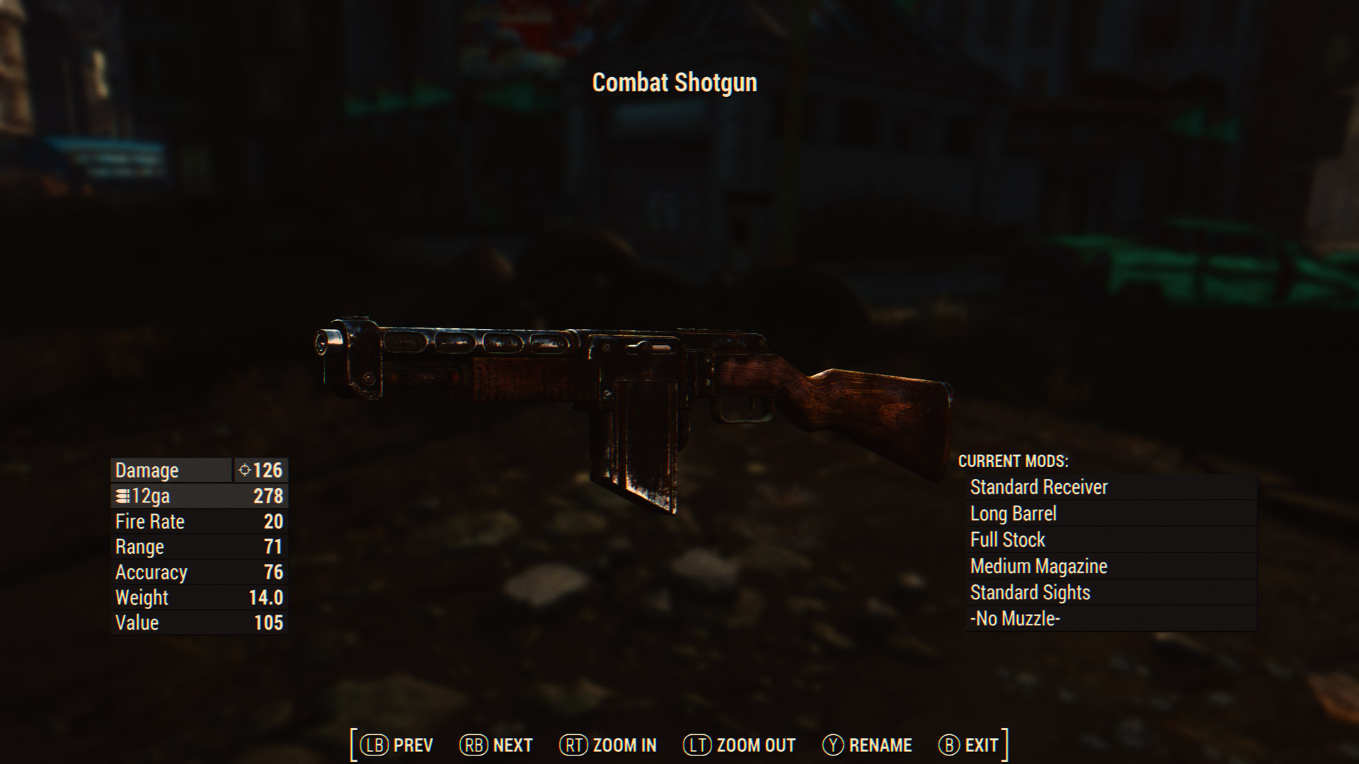 Wobei ich hier sagen muss, dass ich noch nicht lange im Spiel bin, aber bereits so in Materialien und gefundener Ausrüstung schwimme, dass man kaum von Überlebensmodus sprechen kann, dazu muss ich bereits mehr als zwanzig PA haben, die man meistens gefahrlos um Siedlungen herum abschleppen kann. Natürlich musste ich Armorer, Blacksmith und andere Perks maxen dafür, aber eigentlich ist noch nicht mal ein Drittel des Spiels durch und nichts, was ich jetzt noch finden werde, ist besser oder hübscher als das, was ich fast gratis craften kann. Wofür brauche ich eine Quantum-PA, wenn ich eine Big Daddy-PA in viel besserer Qualität haben kann, die aber trotzdem nicht so gut ist wie die T-60 Skull Gorilla? Und die einzigen Unique-Waffen, die ich bis jetzt noch nicht habe, kann ich im Gunrunners-Shop in Project Mojave kaufen, während ich inzwischen die teuren und überpowerten PTSR Simonov mit Explosiv-Geschossen den Siedlern überlasse.
