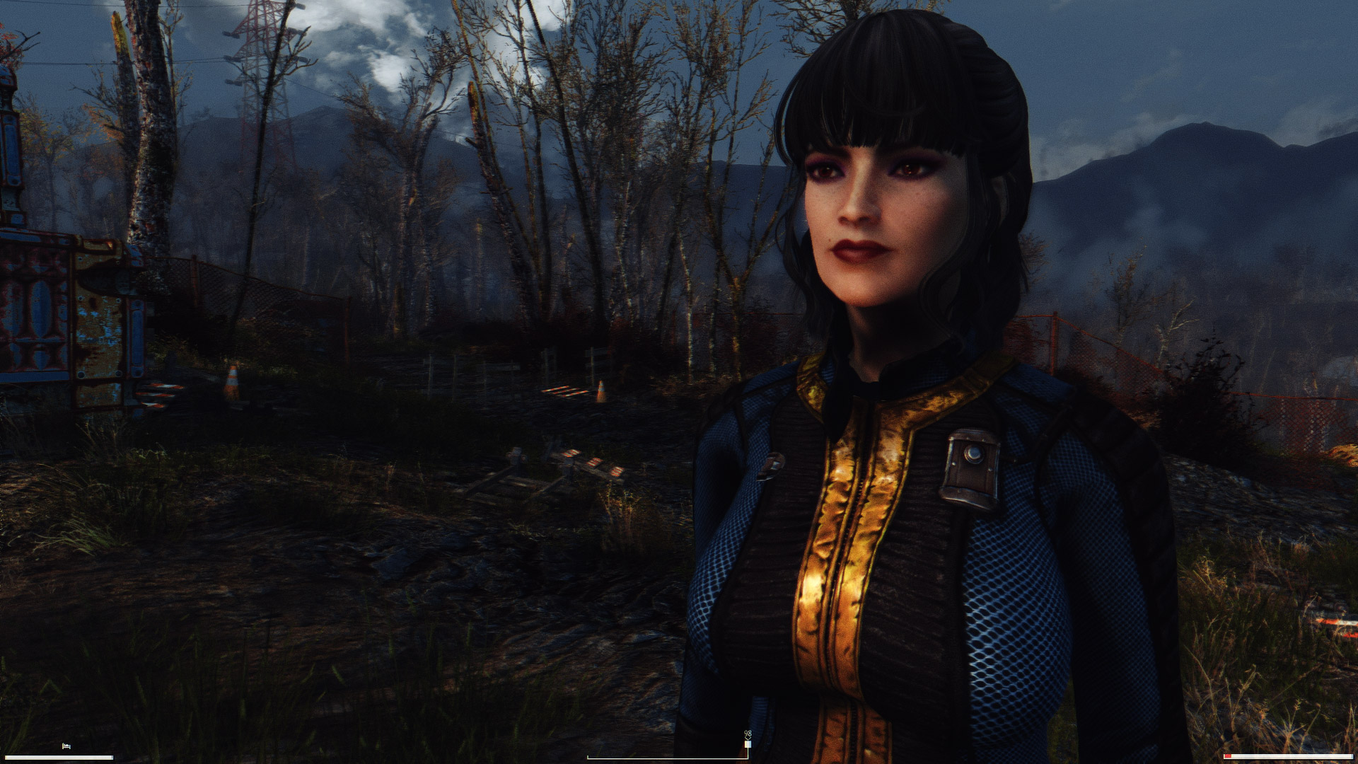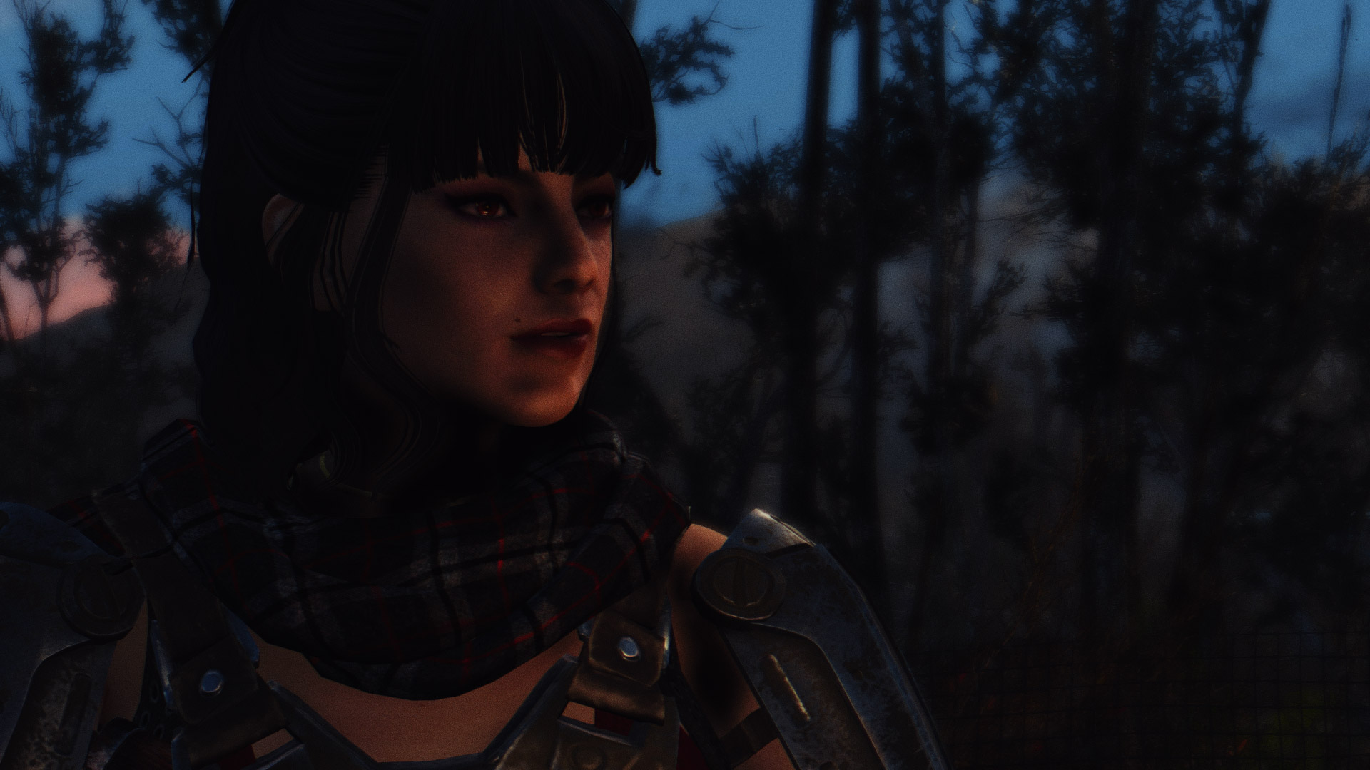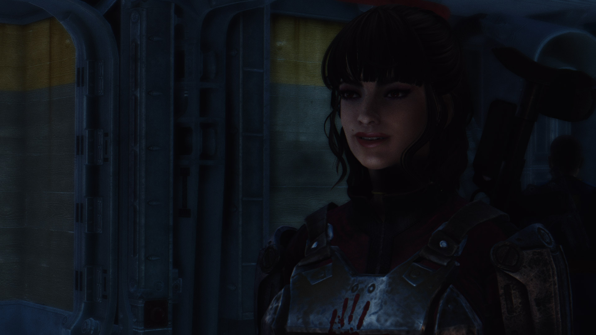 Anyway, von Weitem sieht es nicht schlecht aus, aber aus der Nähe oder einer bestimmten Perspektive sind das eher Fischaugen. Wahrscheinlich muss ich neue Mods installieren, um damit ein schönes asiatisches Gesicht hinzukriegen. Es hat in Fallout 4 einfach keine Assets für diese hübschen Grübchen unter den Augen, die das Originalmodell hat. Wahrscheinlich hätte ich weniger Mühe in Skyrim damit, da gibt es dieses Grübchen. Habe allerdings nicht vor, da gleich eine neue Ladung Mods zu installieren, ich versuche einfach, es mit Bordmitteln so gut wie möglich zu machen.