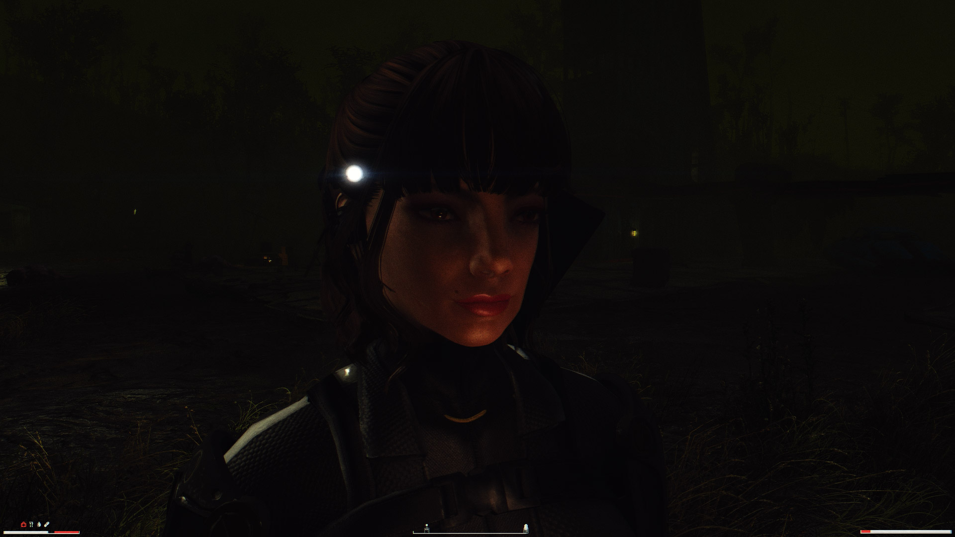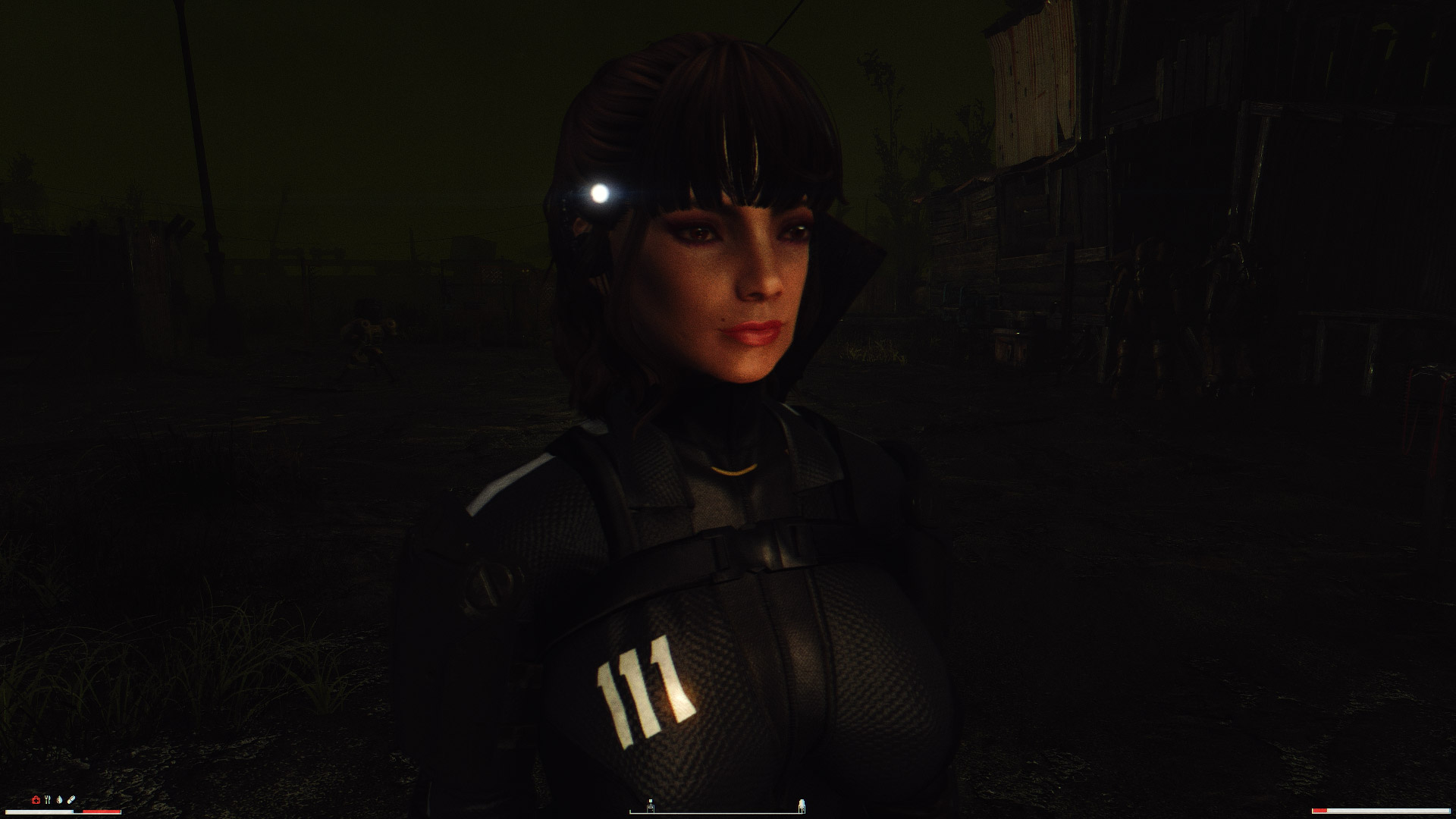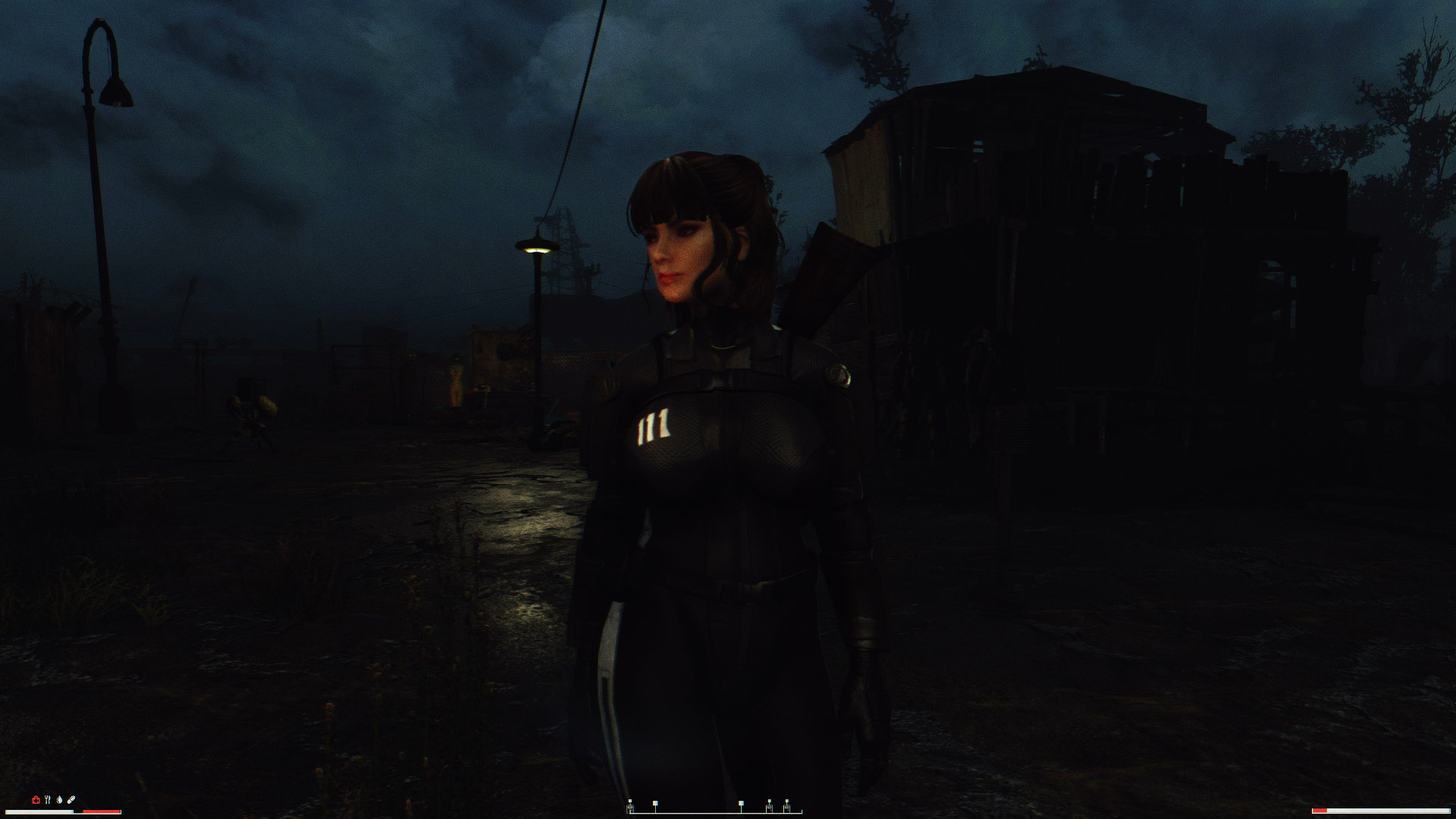 Anyway, von Weitem sieht es nicht schlecht aus, aber aus der Nähe oder einer bestimmten Perspektive sind das eher Fischaugen. Wahrscheinlich muss ich neue Mods installieren, um damit ein schönes asiatisches Gesicht hinzukriegen. Es hat in Fallout 4 einfach keine Assets für diese hübschen Grübchen unter den Augen, die das Originalmodell hat. Wahrscheinlich hätte ich weniger Mühe in Skyrim damit, da gibt es dieses Grübchen. Habe allerdings nicht vor, da gleich eine neue Ladung Mods zu installieren, ich versuche einfach, es mit Bordmitteln so gut wie möglich zu machen.