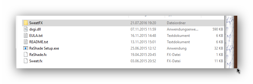 hier die neueste Version ist 3.1.2 Leider kann diese Version nicht mehr mit älteren Versionen von SweetFx umgehen und daher kann sie nicht für ältere Presets verwendet werden. Es gibt aber eine Anleitung im Netz wie man es doch hinbekommt.