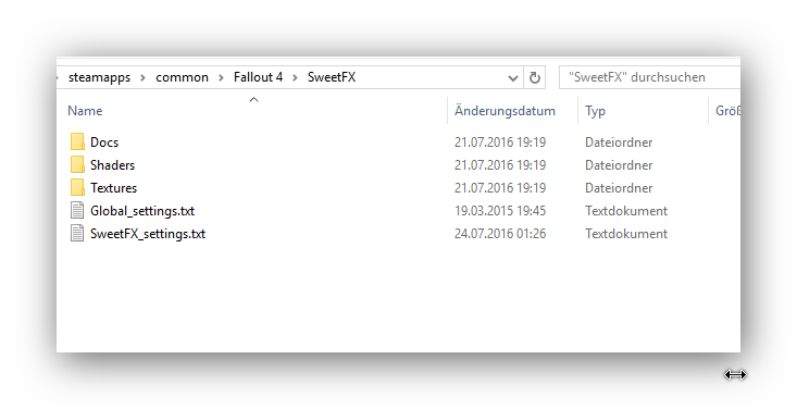 Je nach der Version des Preset muss man noch SweetFX herunterladen und in den Fallout Hauptordner kopieren. (Bitte meinen Einwand beachten bei Reshade Versionen 3 und höher)