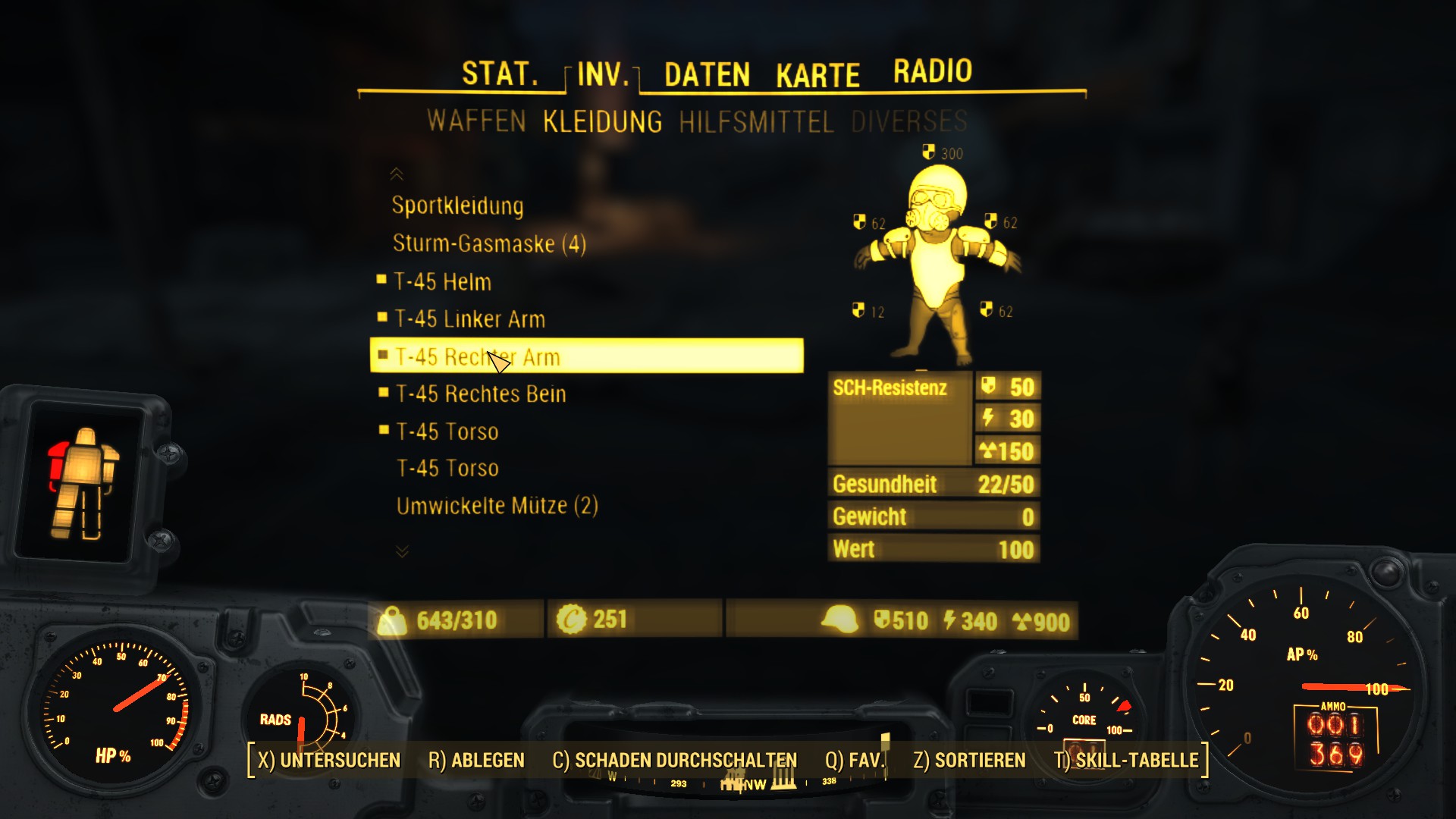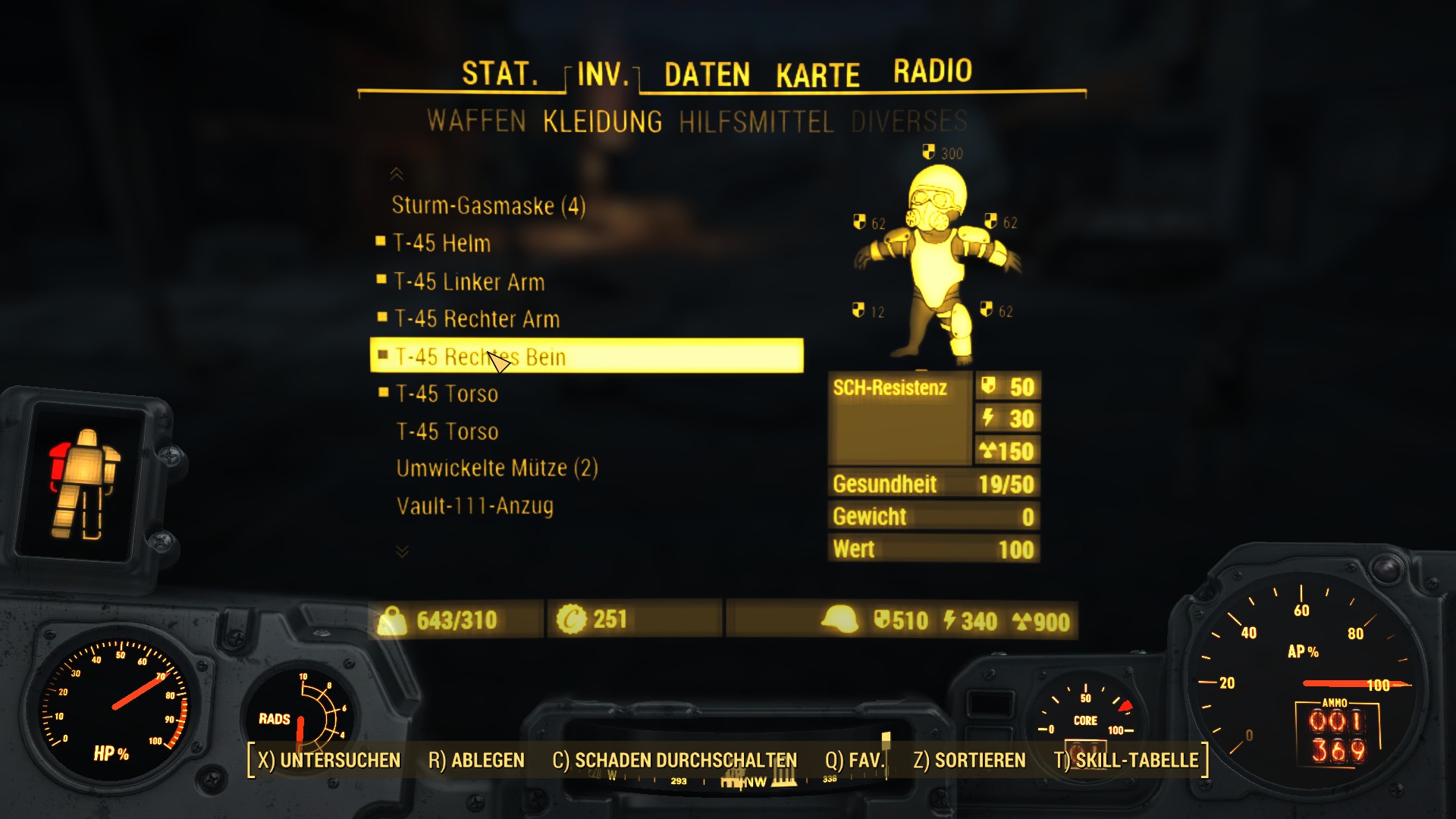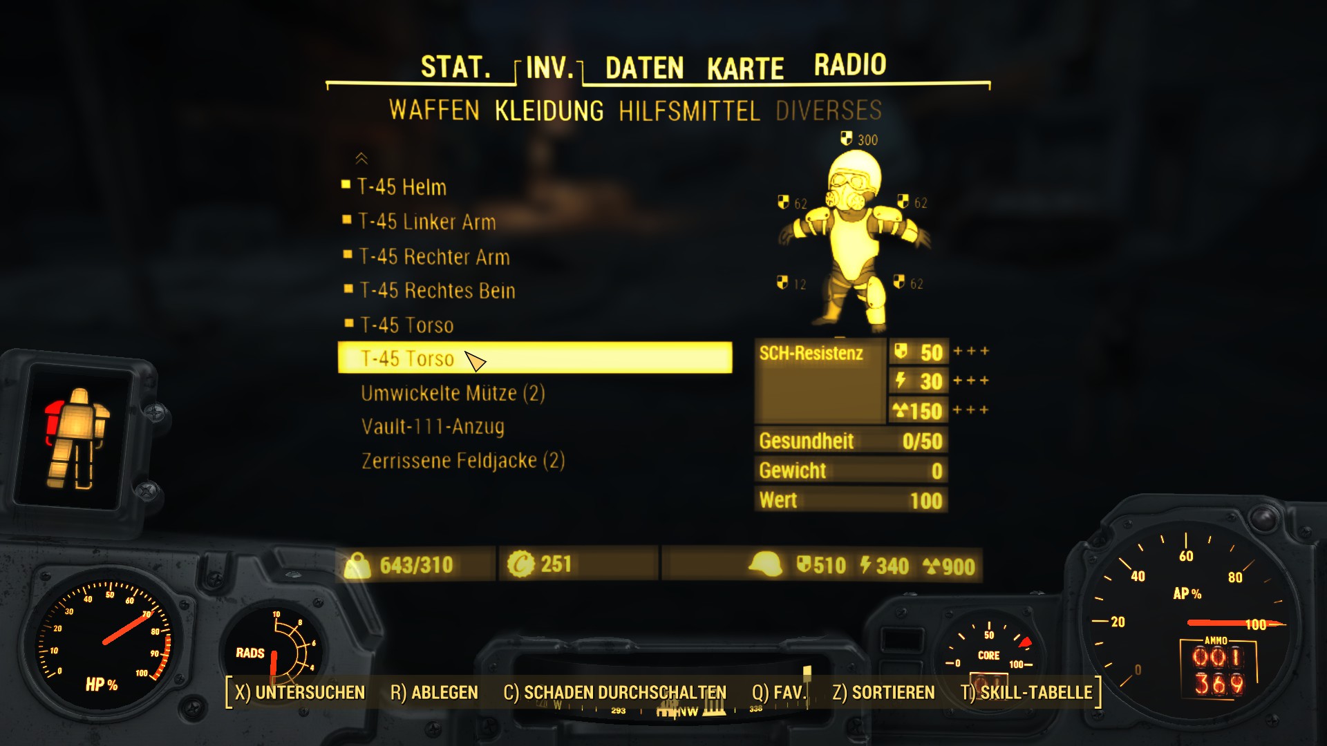 Nee, leider kommt das bei den Screens nicht so wieder, wie es ingame angezeigt wird, denn dort blinken die Rüstungsteile auf dem Pip-Boy-Männchen an der Stelle, wo man den Cursor ruhen lässt.Was meinst du, das dass Gewicht bei Null ist?