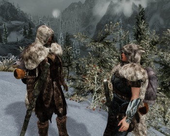 Gemeinsam schritten die beiden Frauen durch das Stadttor und gingen eng in ihre warmen Fellmäntel geschmiegt über die Brücke zu den Ställen von Windhelm. Nyala drehte sich kurz um und betrachtete die in steinernen Mauern gehüllte Stadt ein letztes Mal, da sie nicht beabsichtigte, so schnell wieder zurückzukehren. Als sie bei den Ställen ankamen, war von der Kutsche wie von Mindi bereits erwähnt weit und breit nichts zu sehen. Hinter der Brücke hielten sie sich östlich und bogen auf den Weg ein, der sich den Hügel hinauf nach Kyneshain schlängelte. Von hier aus waren es etwa zwei Stunden bis zur kleinen Siedlung, wenn man gemächlich ging. Sie hatten die Anhöhe nicht einmal zur Hälfte erklommen, als Mindi plötzlich stehen blieb. „Moment einmal, ich muss einmal kurz in die Büsche...“, rief sie und verdrückte sich in das Gehölz am Wegesrand.