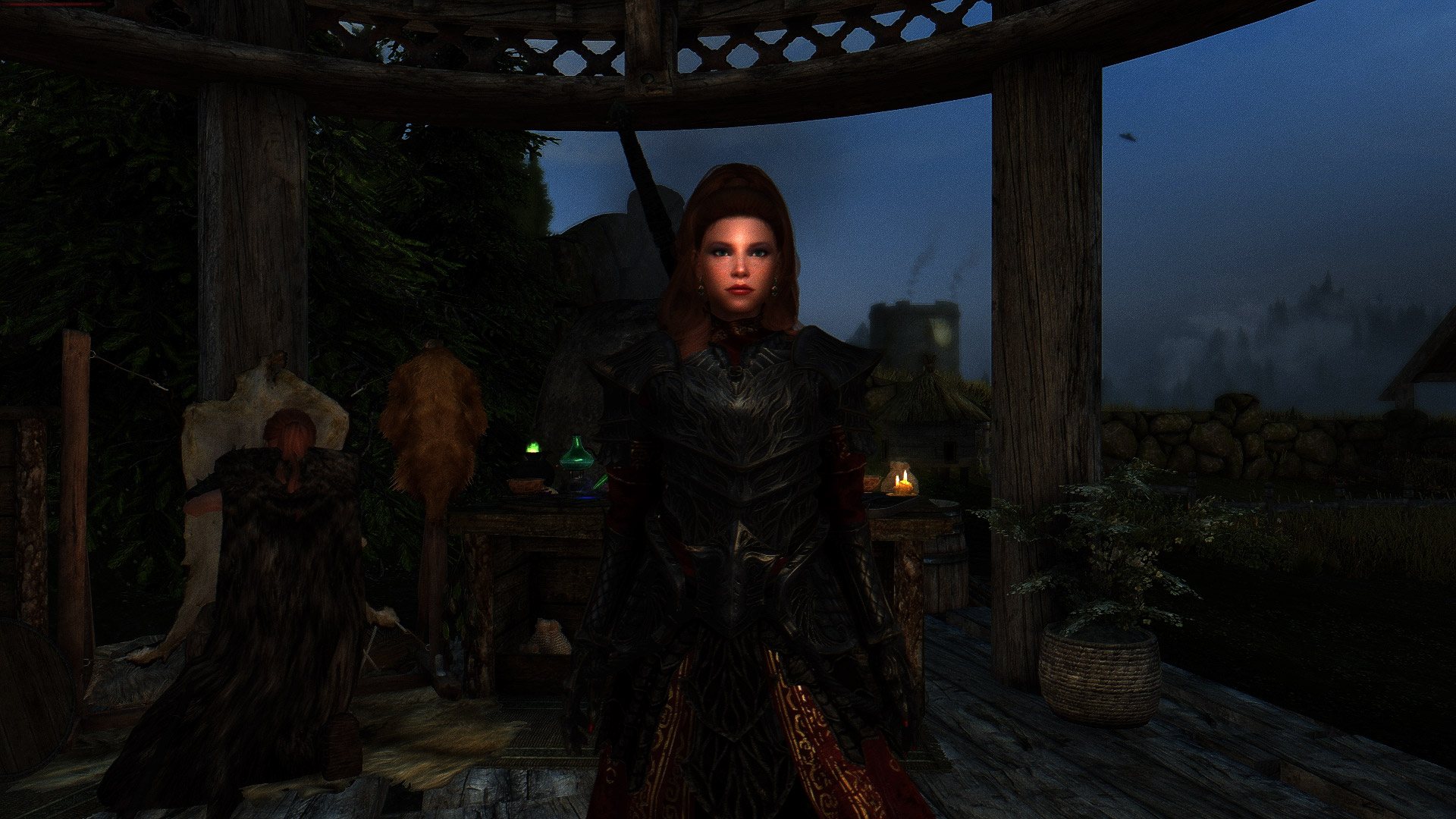 Habe dann gleich ein paar nette Rüstungssets gecraftet: Drachenplatten-Rüstung aus "Book of UUNP", Markynaz-Rüstung, eine skimpy Daedra-Rüstung, eine aus Ebenerz, eine schwarze Version einer Dawnguard-Rüstung, die ich selbst eingebaut habe, die wunderbare Mythic Dawn- Armor, ... Dazu ein Gewand für eine Heimwerkerin, das Imperial-Outfit von Ashara, verzaubert mit allem, was Alchemie und Schmieden verbessert.