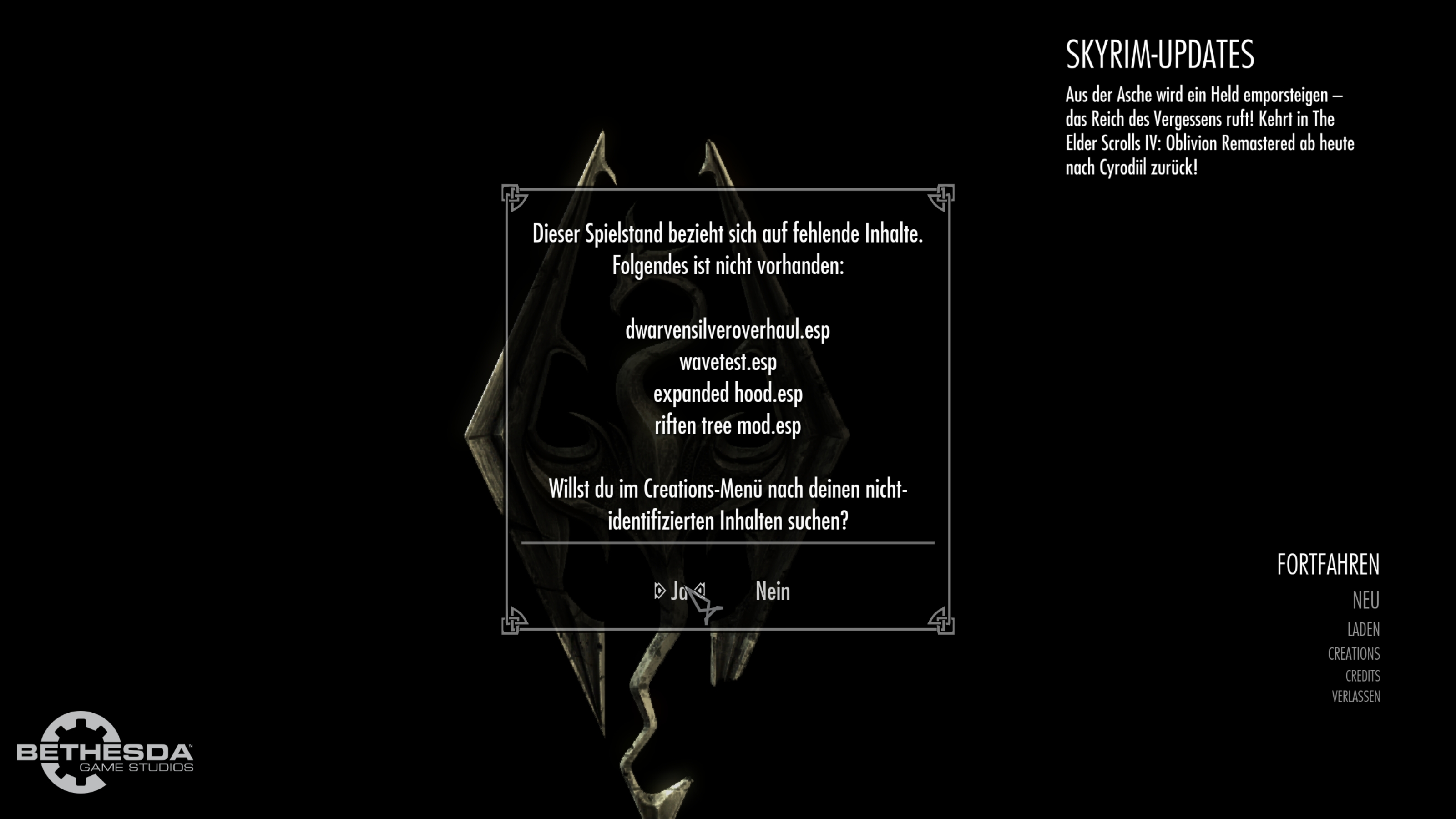 Sonneundso: Ja, oft können Ingame-Aktionen ein Problem auflösen, aber Dawnguard selber ist auch ein wenig verbuggt. Man könnte zur Elfenrasse noch in die Mod-Datei schauen, ob man was auffälliges diesbezüglich findet.