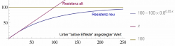 Es wird angenommen, der Spieler habe nur Rüstungsteile mit dem gleichen Magierwiderstand, nämlich 20%. Dann wird ausgerechnet wie viele dieser Rüstungsteile er bräuchte um auf den Oblivion-Magiewiderstand (Hier 100%) zu kommen: 100%/20% = 5. Der Spieler bräuchte also im normalen Oblivion 5 Teile mit 20%, um auf 100% Magiewiderstand zu kommen. Dann wird ausgerechnet, wieviel % vom ursprüngliche Zauber den Spieler erreicht, wenn er 5 Schichten mit je 20% Magiewiderstand hat: (100%-20%)^5 = 33%. Also hat der Spieler 100%-33% = 67% Magieresistenz. Mit diesem Prinzip funktionieren alle Resistenz-Neuberechhnungen meines Plugins ! Im Anhang befinden sich 2 Bilder zur Veranschaulichung dieses Prinzips.