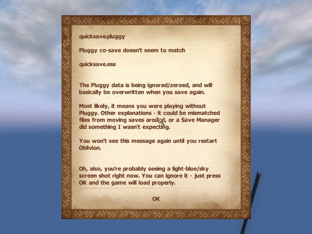 Als ich die Kanalisationen verlies beendete ich Oblivion und deaktivierte die Mod.
