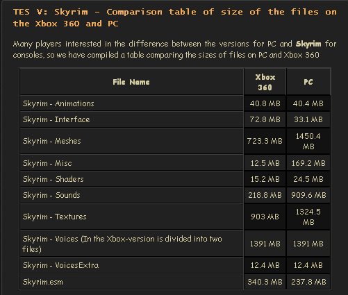 Hier noch ein interessanter Vergleich der Filegrößen der XBox und PC Version: