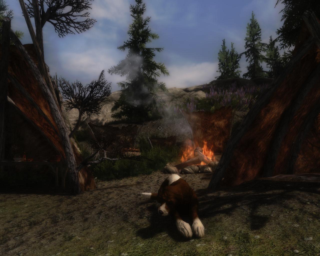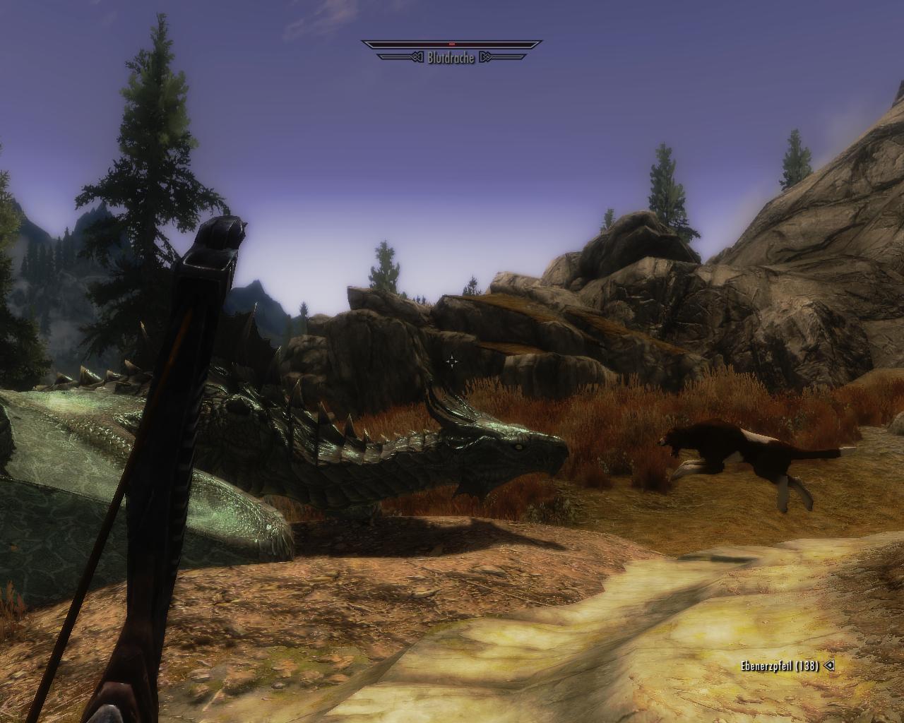 Brego leidet an einem Trauma! Zu allererst fiel es mir auf, als wir aus einer Höhle kamen. Vor dieser saß ein verwirrter Jäger, dessen Freunde in besagter Höhle von Bären angegriffen wurden. Ich ging also hinein, schaute dort nach dem Rechten, konnte ausser den Toten und einem wirklich aggressiven Bären noch eins dieser Baummenschen finden, mir fällt leider der Name gerade nicht ein.