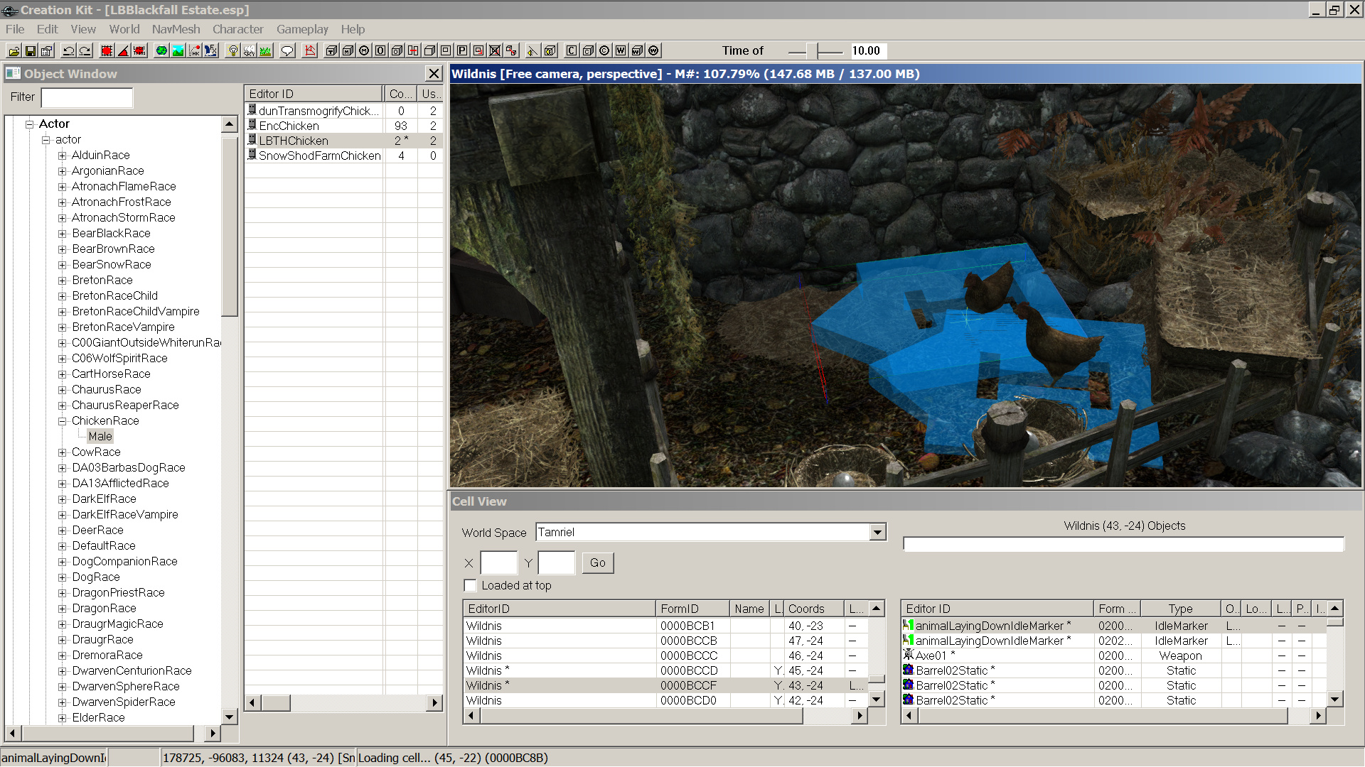 Ich habe mir im Creation Kit ein kleines Haus gebastelt, mit 2 Hühnern draußen und einem Menschen NPC im Haus. Es funktioniert auch soweit alles bestens. Hin und wieder, mitten im laufenden Spiel, kommt es aber vor dass die Hühner plötzlich weg sind. Zuerst dachte ich mir nichts dabei (ggf. fortgelaufen, Banditen waren im Garten) und dann war irgendwann auch der NPC im Haus verschwunden. Das ganze passiert absolut zufällig (habe das viel ausprobiert durch neuladen und so).