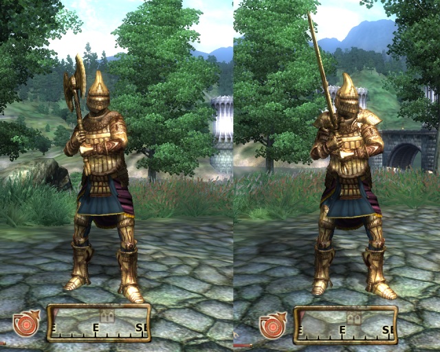Alle Rüstungssets laufen jetzt nach einem Schema: Egal ob Dwemer- oder Daedrarüstung, dieser unterschied ist nur Optik. Es soll jedes Set in Leicht und Schwer geben. Leistungsteigerung gibt es durch die Menge an Rüstteilen und die Verwendung schwerer Teile des Sets.