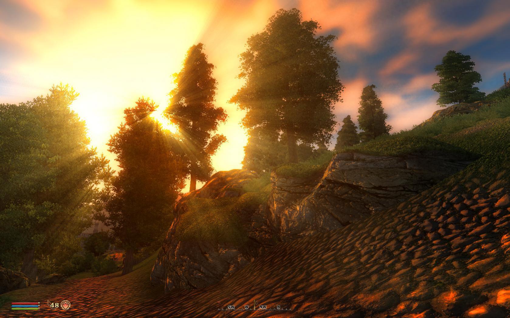 1: ENB Series für Oblivion. Habe die .ini nur marginal angepasst, da mir das Bild mit den Einstellungen seitens des Herausgebers etwas zu "überbelichtet" war.