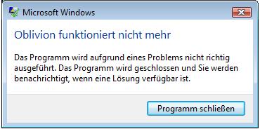 Ich habe mir gestern einen neuen PC gekauft, auf dem Vista vor installiert war. Ich hab Oblivion installiert aber kurz nachdem ich das Spiel starte kommt so ne Fehlermeldung: