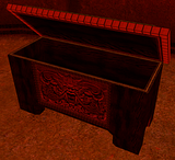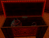 Beim ersten Anklicken öffnet sich die Kiste, beim zweiten schließt sie sich wieder. Die Bewegung ist mittelschnell. Bitte beachtet, daß Morrowind keine "Physiqued Engine" hat. Wenn man etwas auf die Kisten legt, bewegt sich der Deckel hindurch. Gegenstände, die zu groß sind, gucken durch den Deckel, wenn sie sich in der Truhe befinden.