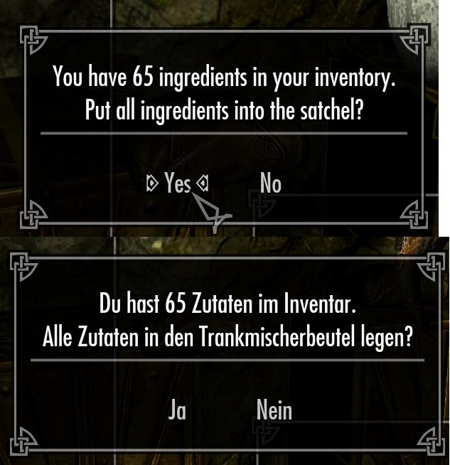 Wenn du einen Trankmischerbeutel öffnest testet ein Skript, ob du irgenwelche Zutaten in deinem Inventar hast. Falls ja hast du die Möglichkeit alle im Beutel abzulegen.