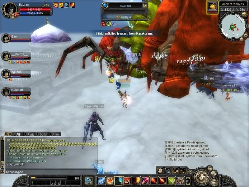 Btw. ich hab nen Perfekt geskillen Full Str Glavier mit z.z.: Heuksal auf 41, Fire auf 25, Lightining auf 24 und Pacheon auf 24 (für Passiv und den Hawk zur Schadenssteigerung) ja ich muss langsam wieder nachskillen, ich fang jetzt mit 41 auch an zu farmen. Ich hab mit 36 schon Spear-Inter bis 42 gekillt, locker, 2Hits und die warn weg sie hätten zwar auch nur 2Hits gebraucht aber ich war halt schneller.:lol: