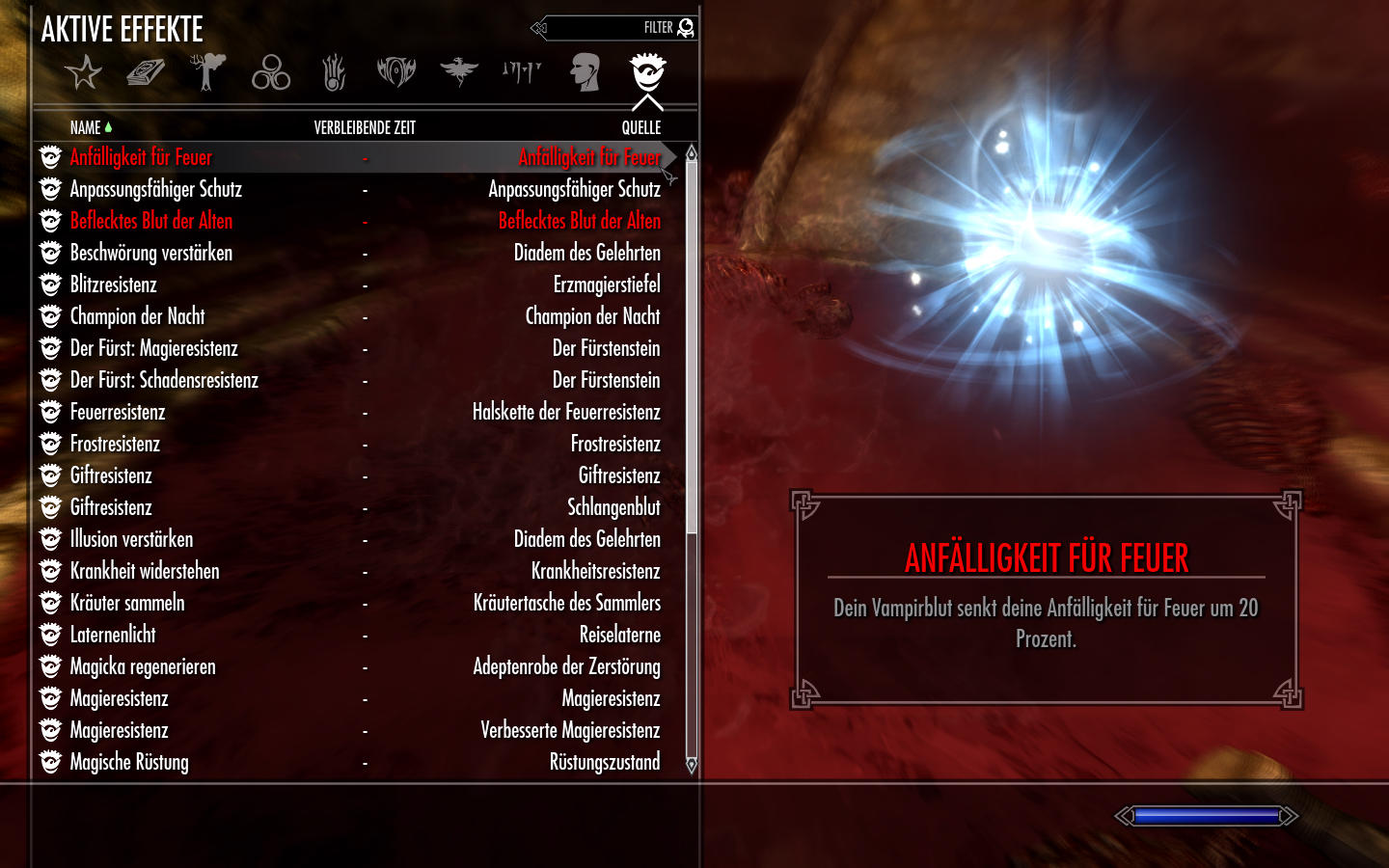 Richtig müsste es heissen "Dein Vampirblut steigert Deine Anfälligkeit für Feuer". Oder aber "Dein Vampirblut senkt deine Feuerresistenz", was dann aber nicht mehr ganz mit dem Effektnamen harmoniert.