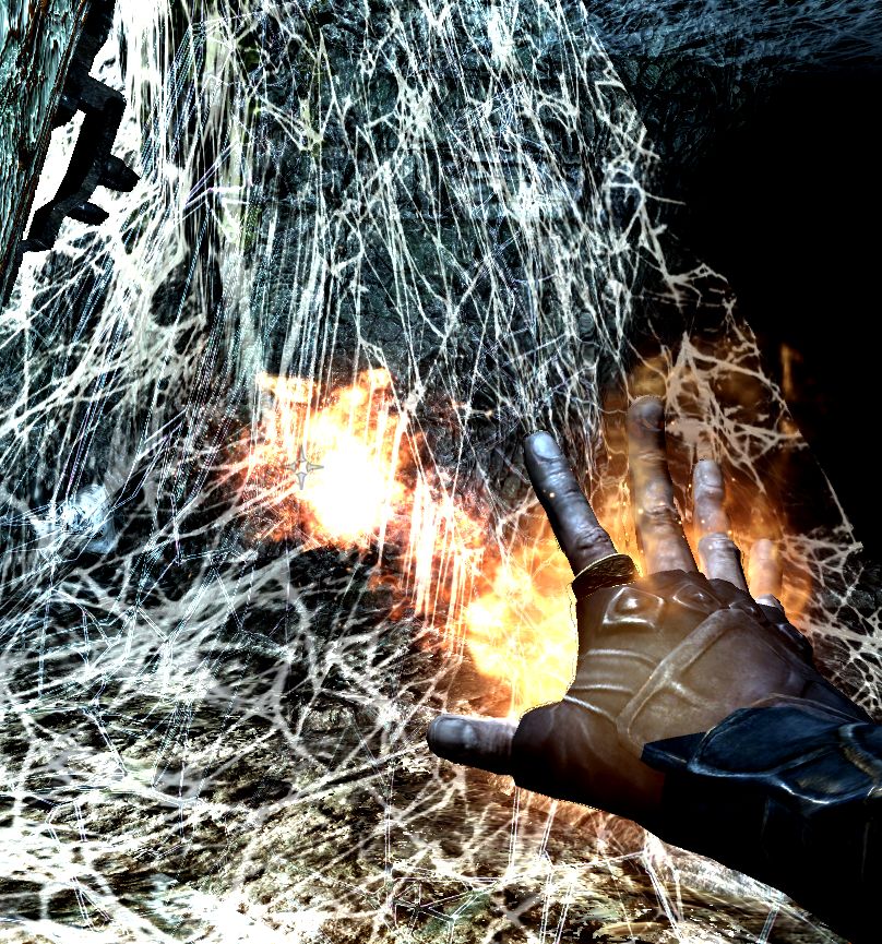 eigentlich ist Feuer ja eine gewaltige elemantare Vernichtungskraft, aber ich kann mich nicht erinnern, dass ich jemans Durchgänge, die durch Spinnweben verschlossen waren, oder sonst Räume mit Spinnen und Spinnweben, diese anders als mit Schwert "zerschlagen" konnte. Fackel oder Feuerball oder sonst was mit Feuer war immer wirkungslos.