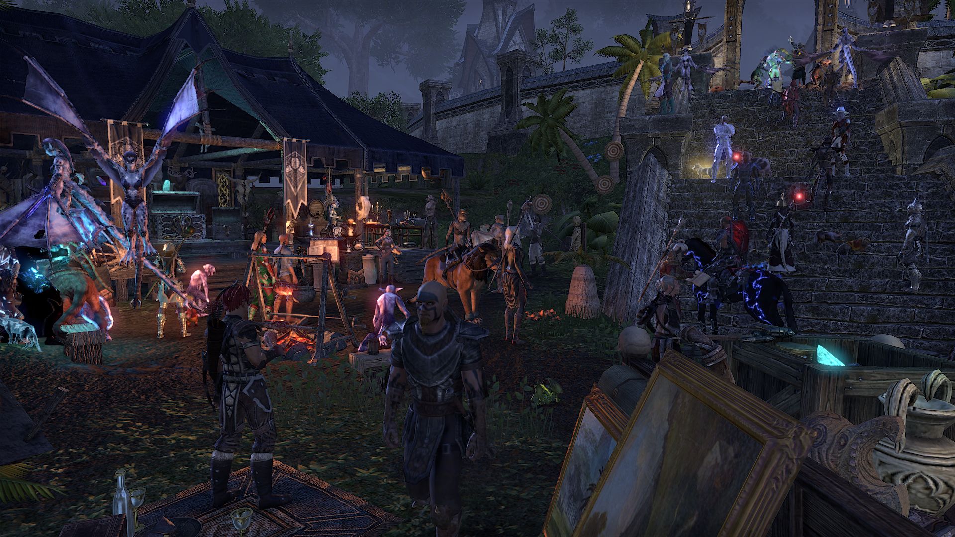 Unter dem Steinbogen schläft die Bosmerin Eveli Scharfpfeil, die der geneigte Spieler schon aus der Hauptquest von Orsinium kennt. In ihrem Arm hält sie das Mysterium Xarxes, das schon in TES IV eine prominente Rolle spielte. Auf dem Boden neben ihr schläft ein Argonier. Eveli wird von einem Albtraum geplagt, in dem sie durch anscheinend argonische Ruinen fliegt und scheint schließlich in den Totenländern herauskommt. Als sich vor ihr die riesige Gestalt von Mehrunes Dagon erhebt, erwacht sie aus dem Traum.