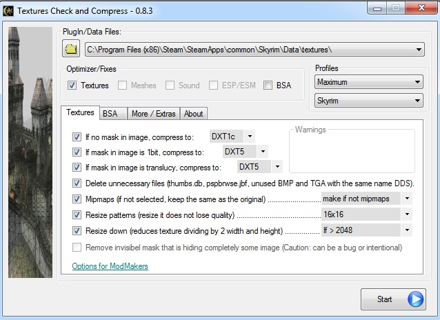 so weit ich weiß, den textur optimizer erst dann drüberlassen, wenn alles super läuft und fertig gemoddet ist. probier' doch mal boris' binary 229 aus. die hat den booster mit drin und ingame eine menge optionen zum einstellen. die neueren seiner varianten weiß ich nicht -hatte noch keine zeit zum probieren. wenn du dich drübertraust, kannst du ja auch mit der enb-ini ( enbseries ) im skyrim-installations ordner ein wenig herumspielen. aber wie immer gilt: vorher eine sicherung davon anlegen.