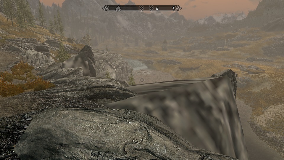 Dennoch hab ich nen fiesen Texturfehler gefunden und frage mich jetzt, ob eine Texturmod für die Berge bei sowas Abhilfe schafft.