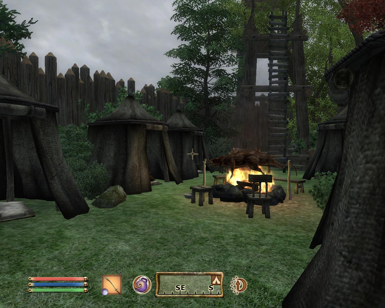 Im Erdgeschoss ist die Eingangshalle, ein kleines Zimmer, welches über eine Tür hinter eurem Thron in der Eingangshalle zu erreichen ist, ein Zauberlabor, ein Alchemielabor, ein Krankenstation und ein Übungskomplex, außerdem die Küche.