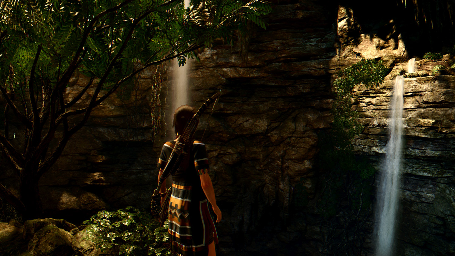 Auch dies ein hübsches Spiel, alles Ultra, 4k, läuft vernünftig. Zwar ist nicht jeder Hintergrund fehlerlos und ab und an hatte ich Licht-Glitches und flackernde Bäume, allerdings nicht so oft. Teilweise sind manche Bäume im Hintergrund meinem extrem gemoddeten Skyrim SE leicht unterlegen, aber im Durchschnitt sieht es episch aus mit diesen Tempeln am Berghang und hinten die Schneeberge. Und wie gesagt, Rise aus der Box verglichen mit einem SE mit tausenden von Mannstunden Modding-Arbeit und Reshade drauf. (Der Vergleich ist nicht völlig abwegig, ich glaube, dass Skyrim SE ein besseres Beleuchtungsmodell als Tomb Raider hat, aber dass es enorm schlecht eingesetzt wird.)