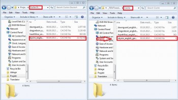 Oben seht ihr die verschiedenen Optionen, unten habe die Option markiert wo uns das Programm mitteilt, das etwas fehlt. Um es euch einfacher zu machen, lege ich meine bereits erstellten Cache-Dateien zum Download bei, so könnt ihr sie wie folgt einfügen: