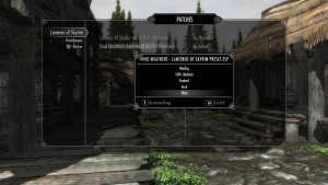Purity hat ja noch eine Vorlage für die Mod Lanterns of Skyrim (wo Laternen auf der Strasse hinzugefügt werden). Die Datei heißt dort "4_Lanterns of Skyrim - Purity preset". Wie benutzt man so eine Vorlage? Ich kann die Vorlage dann zwar im MCM-Menü unter Patches finden (von der Laternen Mod) aber kann da irgendwie nichts einstellen oder festlegen. Ich hatte es bisher einmal dass ich die Intensität des Lichts festlegen konnte wenn ich auf die Vorlage klickte, aber das kommt nicht mehr, immer nur ein leeres Feld.