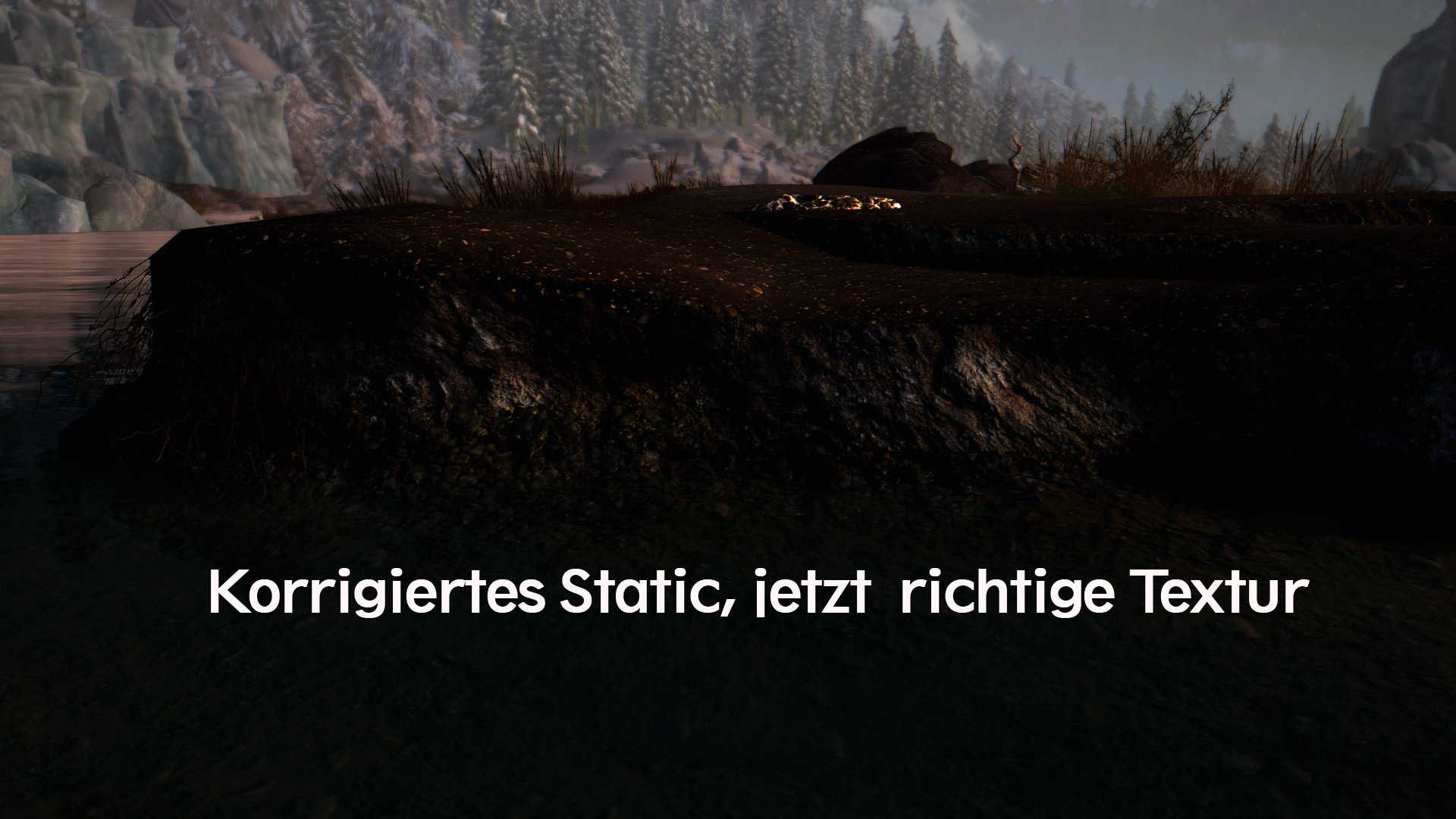 Das mit den Meshes der Feuer und der Böschung ist ein gutes Beispiel für Bethesdas Arbeitsweise, eine Mischung aus Schlamperei und fehlendem Testen. Es gibt tausende solche Mini-Bugs im Spiel, die nirgends gelistet sind. Oftmals bestehen die einfach aus einem Flag, das nicht gesetzt ist, oder einer Textur, die nicht zugewiesen ist. Sowas sollte einem Entwickler überhaupt nicht passieren, wenn er nur rasch ins Game geht, um das abzuchecken, was er eingebaut hat. Ich hatte für meine Flatrim-Mod eine neue Bodentextur erstellt. Dann ein Feuer-Modell reingezogen. Ah, falsche Textur, schnell rasch eine Variation machen mit der richtigen Textur. Aufwand: 1 Minute.