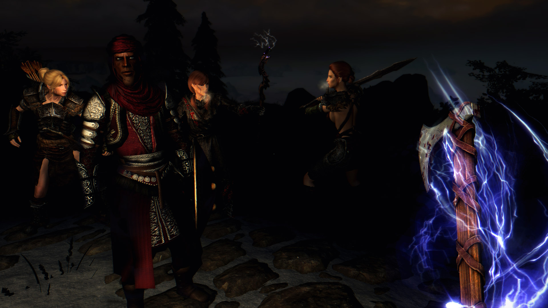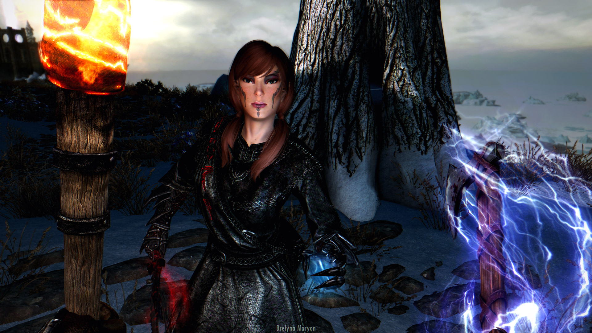 Bin mir bei Brelyna nicht sicher, ob mir das jetzt gefällt oder nicht. Eigentlich bräuchte sie eine angepasste dunkle Textur, nur mit den Farbregeln bingt man keine dunkle realistische Hautfarbe hin, sie müsste auf jeden Fall düsterer aussehen. Die männlichen Dunkelfen sehen teilweise hervorragend aus, dank einer Textur von der ich keine Ahnung mehr habe, woher sie kommt. Aber bei den weiblichen Elfen sieht es so aus: Wenn sie eine Mod bearbeitet, sehen sie wie menschliche Fotomodelle aus, wenn keine Mod daran schraubt, wie eine Karikatur eines Elfen.