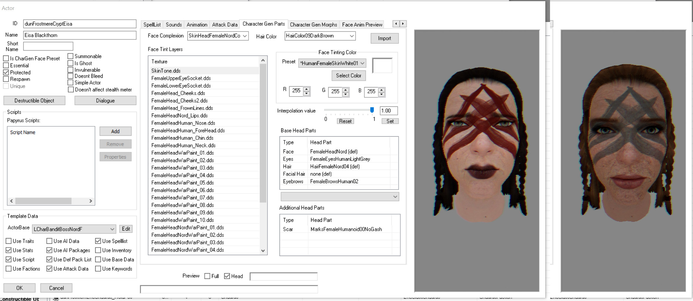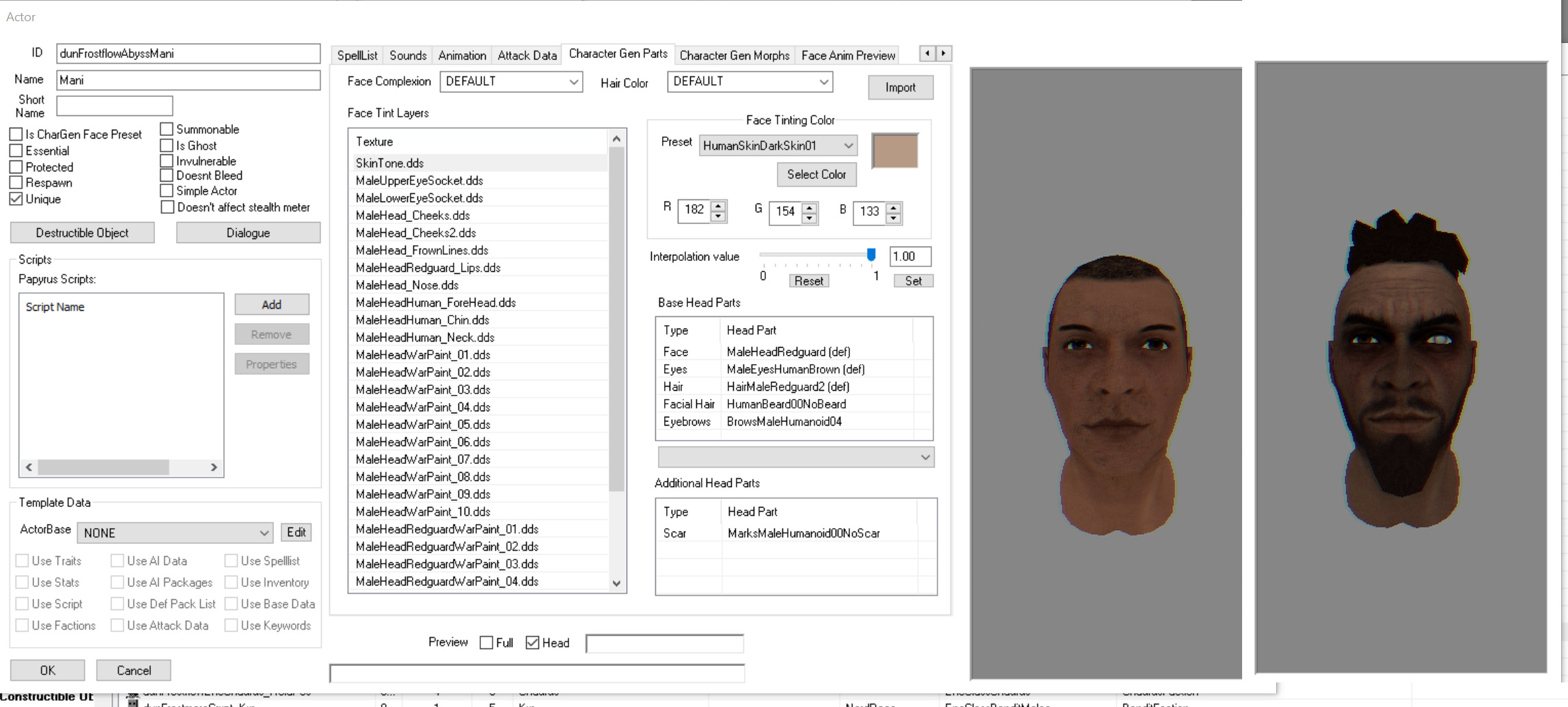 anpassen. Danach die Complextexturen austauschen und man hat exakt das Aussehen aus dem Racemenü am NPC.