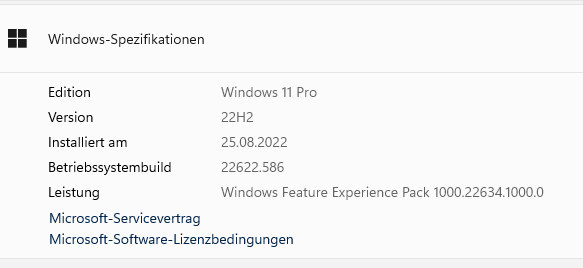 Dann kam Version 22000.776 und ich fand mich im „schwarzen Nichts mit Maus“ wieder, (siehe Beschreibung oben).