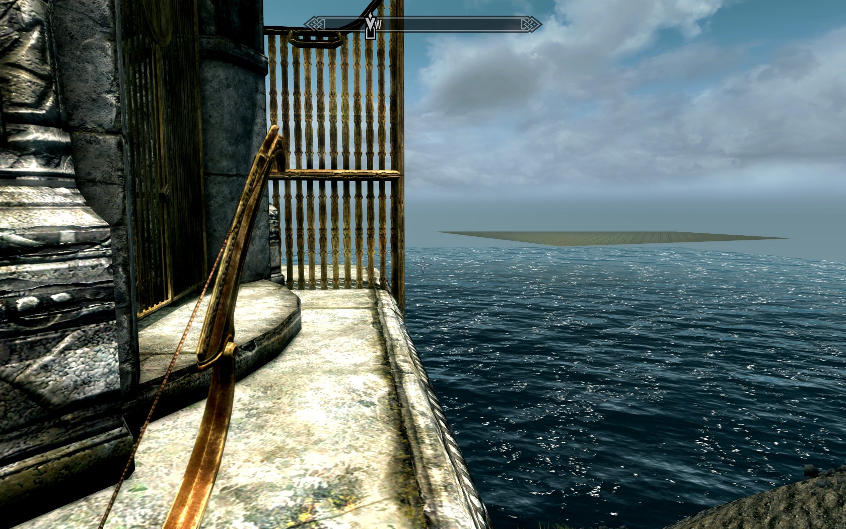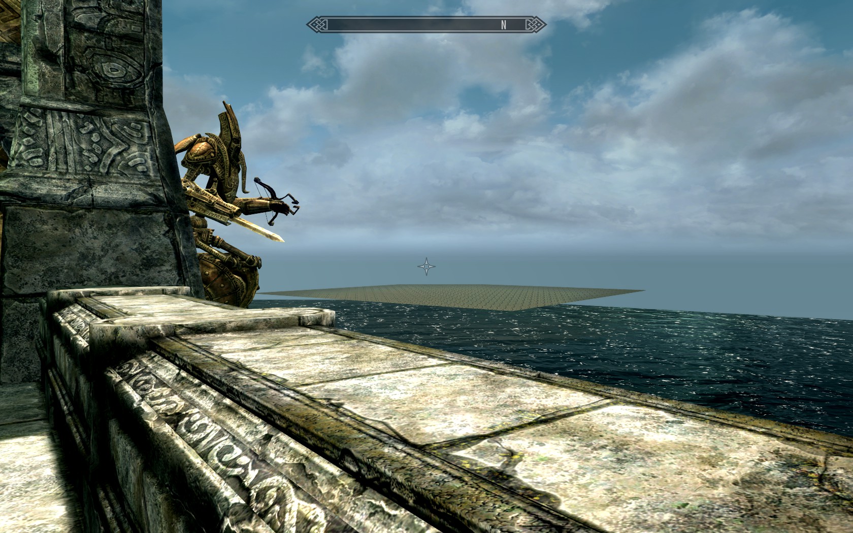 Ich hab mir ja für meine Mod Mausnthamz nen eigenen Worldspace gebaut, und jetzt hab ich bemerkt, dass (ingame) mitten in der Luft, fernab von allem was ich gebaut hatte, einfach eine Plattform im Himmel hängt. Bin dann mittels TCL direkt draufgewandert und konnte auch drauf stehen, sieht aus wie Meeresboden und ist quadratisch. Auf Verdacht bin ich dann runtergehüpft und unter der Plattform nach unten getaucht. Es sieht so aus, als ob bei der speziellen Worldspacezelle einfach der Meeresgrund über der Wasseroberfläche liegt, allerdings sehe ich das im CK nicht, und ich hab auch keine Möglichkeit gefunden das einzustellen, nur Wasserhöhe.