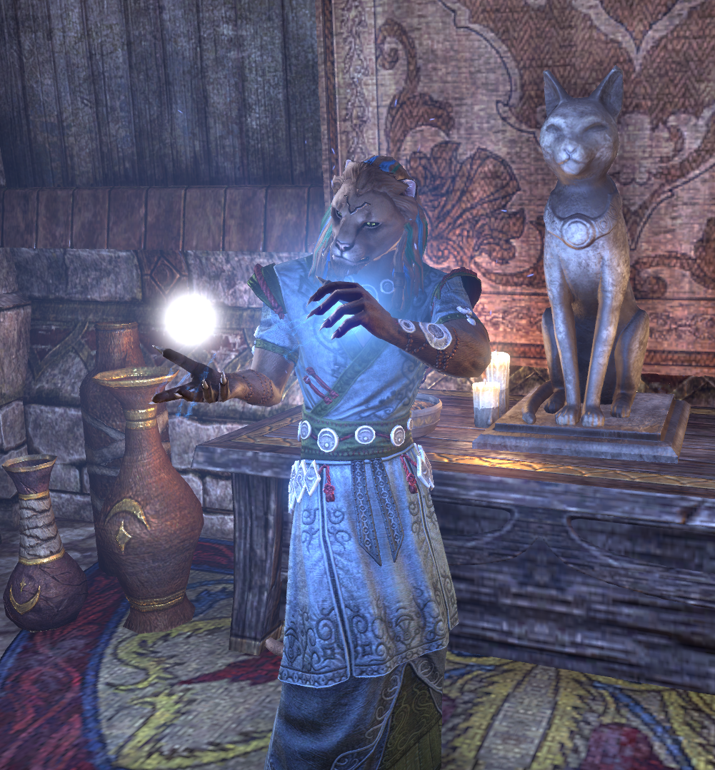 Kaum später tauchte eine seltsame Khajiit namens Marallia im Dorf auf. Sie erzählte ihm, dass sie durch einen Kult, der Körperwanderung betrieb erst in diesen Katzenkörper gefangen wurde. Surya bat seine Hilfe an, doch konnte auch er den Zauber nicht umkehren. So musste Marallia ihr Schicksal annehmen und verblieb bei den Khajiit im Dorf.