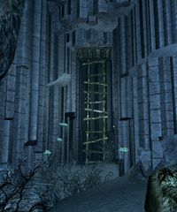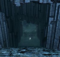 Nach Passieren der Türe ist man in der Kaltaschenhöhle, es führen breite Nordtreffen hinunter in einen langen, schmalen Gang zwischen Basaltsäulen, der in eine kleine Halle mit einem Tümpel und einer Netchfamilie mündet. | |||