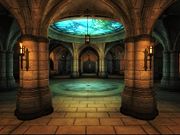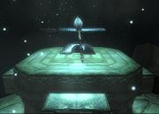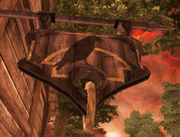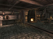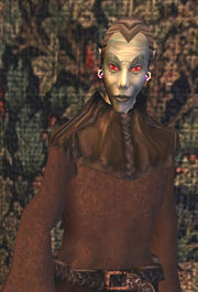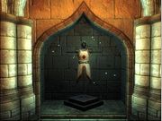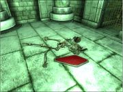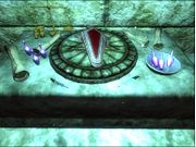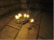 Diverse kleine gegenstände ohne großen Sinn auf dem Tisch neben Socucius Ergalla im Zensus und Steueramt in Seyda Nee. Ein Tintenfass mit Feder darin Eine Flasche und ein Becher Eine kleine Holztruhe Ein Kerzenständer