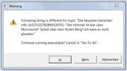 | 19:58, 1. Mai 2014 | Morrowind.ini Allow Yes To All.jpg (Datei) | 51 KB | Mit der zusätzlichen Einstellung ''AllowYesToAll=1'' in der Morrowind.ini erscheint im Construction Set bei Fehlern eine zusätzliche Schaltfläche ''Abbrechen'', die die Funktion ''Ja, für alle'' ausführt und somit alle … | 1 | |