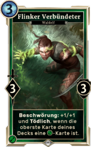| 14:51, 11. Sep. 2016 | LG Karte Flinker Verbündeter.png (Datei) | 161 KB | Die {{LG|Karte}} {{LG|Flinker Verbündeter}} aus {{LG|The Elder Scrolls: Legends}} Kategorie:Kartenbilder (Legends) | 1 | |