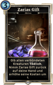 | 19:46, 19. Apr. 2017 | LG Karte Zarias Gift.png (Datei) | 144 KB | Die {{LG|Karte}} {{LG|Zarias Gift}} aus der ''{{LG|Der Fall der Dunklen Bruderschaft}}''-Erweiterung von {{LG|The Elder Scrolls: Legends}} Kategorie:Kartenbilder (Legends)Kategorie:Kartenbilder (Dunkle Bruderschaft) | 1 | |