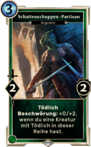 | 20:50, 30. Jun. 2017 | LG Karte Schattenschuppen-Partisan.png (Datei) | 153 KB | Die {{LG|Karte}} {{LG|Schattenschuppen-Partisan}} aus der {{LG|Heroes of Skyrim}} Erweiterung zu {{LG|The Elder Scrolls: Legends}}. Kategorie:Kartenbilder (Legends)Kategorie:Bilder (Heroes of Skyrim) | 1 | |